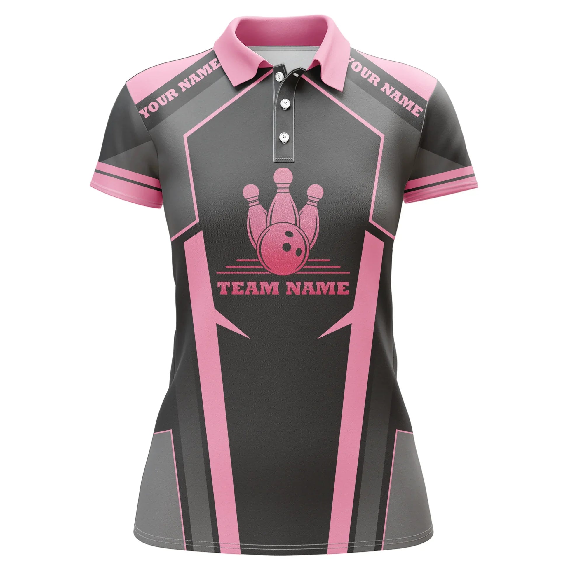 BlueJose Black Pink Bowling Team Premium Customized Name 3D Shirt For Women