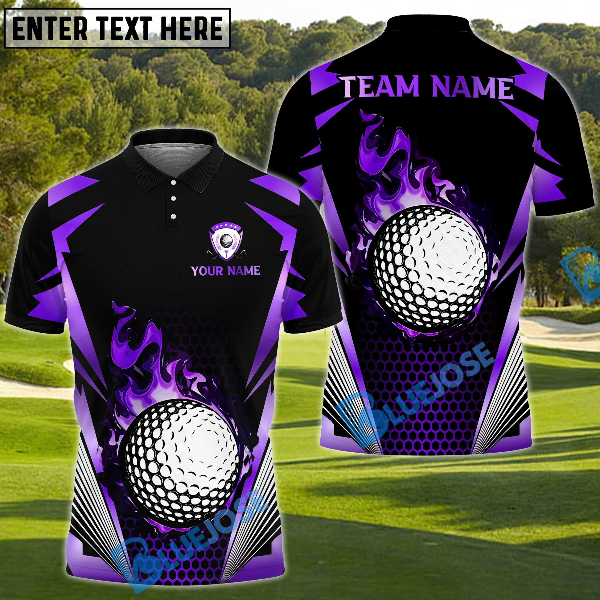 BlueJose Blazing Fireball Golf Polo Shirt, Customized Name & Team Name 3D Shirts (4 Colors)