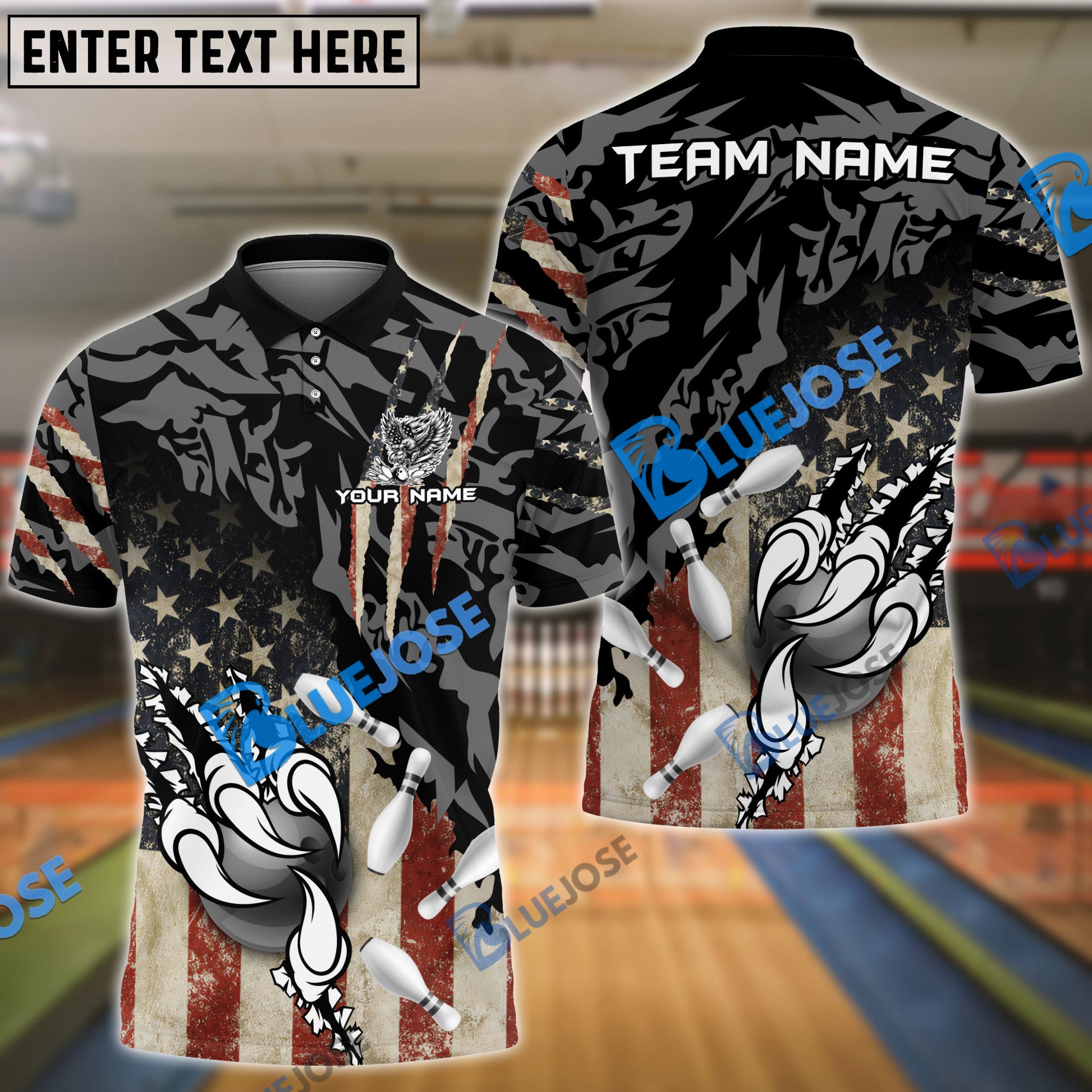 BlueJose Bowling And Pins American Eagle Claws Customized Name 3D Shirt (4 Colors)