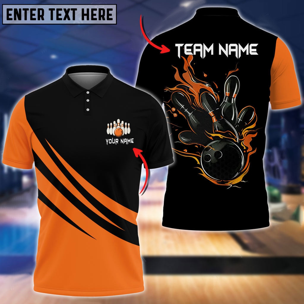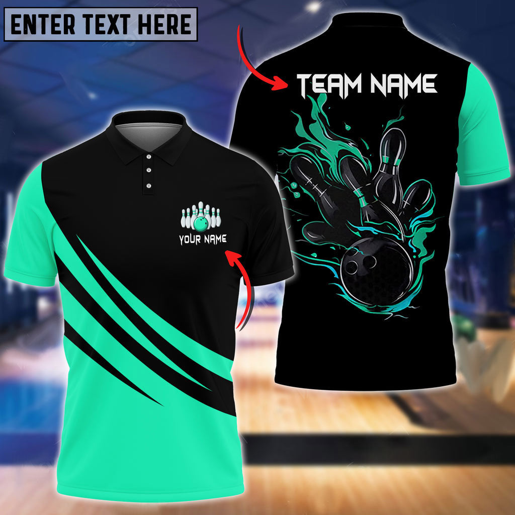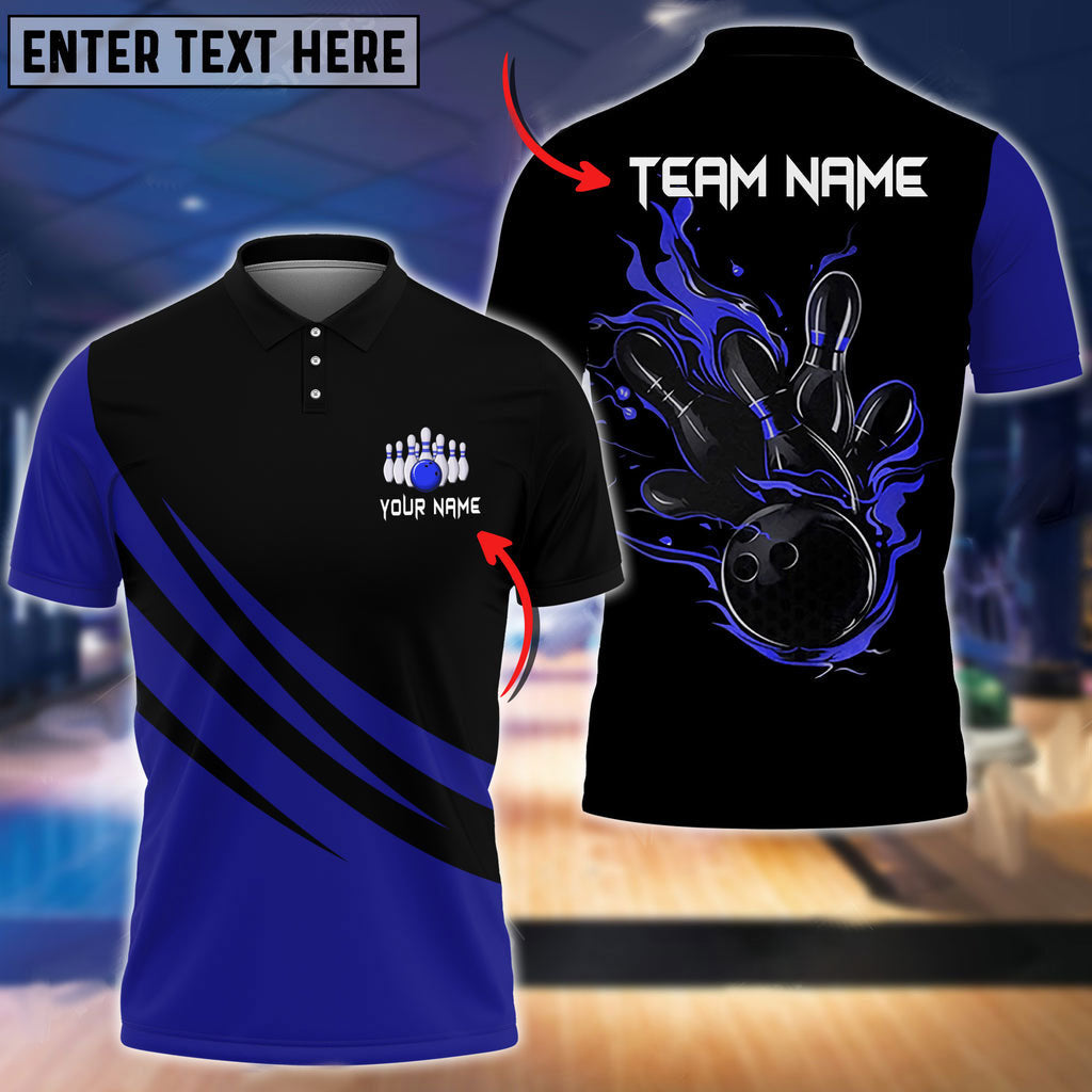 BlueJose Bowling And Pins Basic Black Customized Name 3D Shirt (4 Colors)