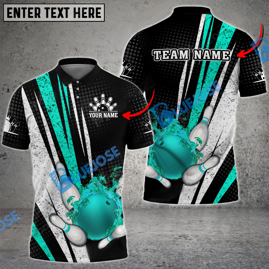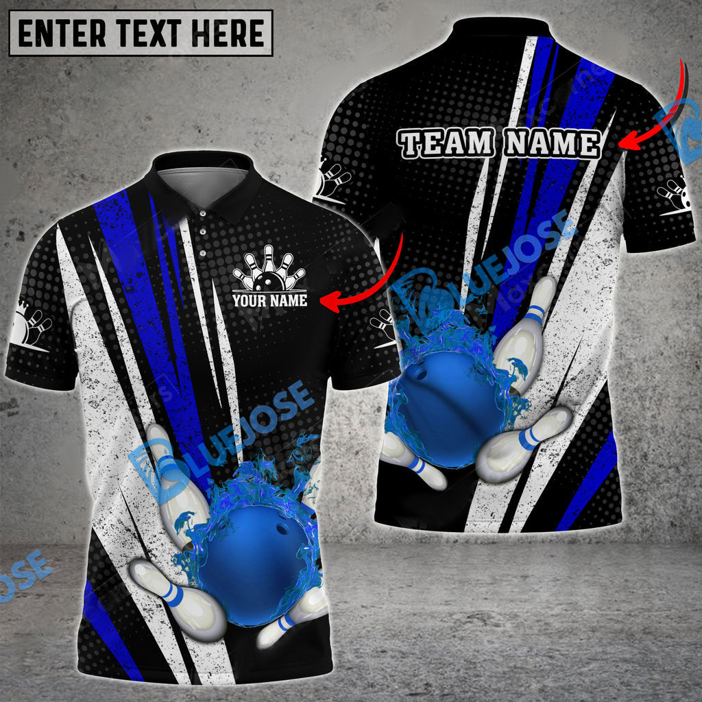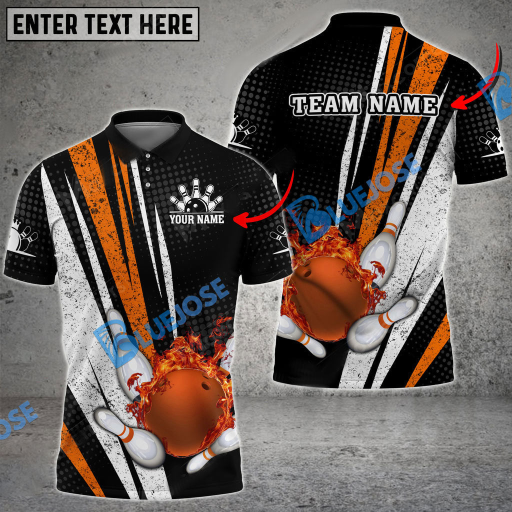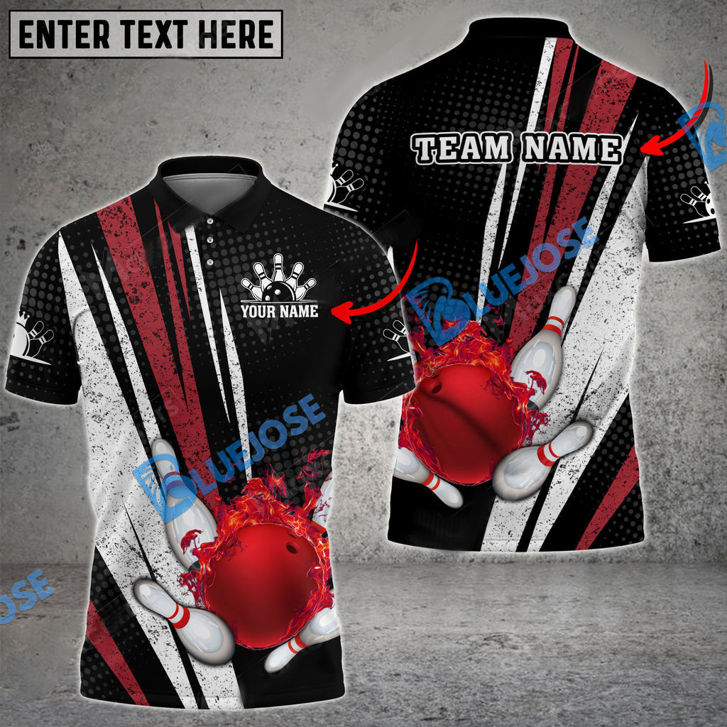 BlueJose Bowling And Pins Fire Point Customized Name 3D Shirt (4 Colors)