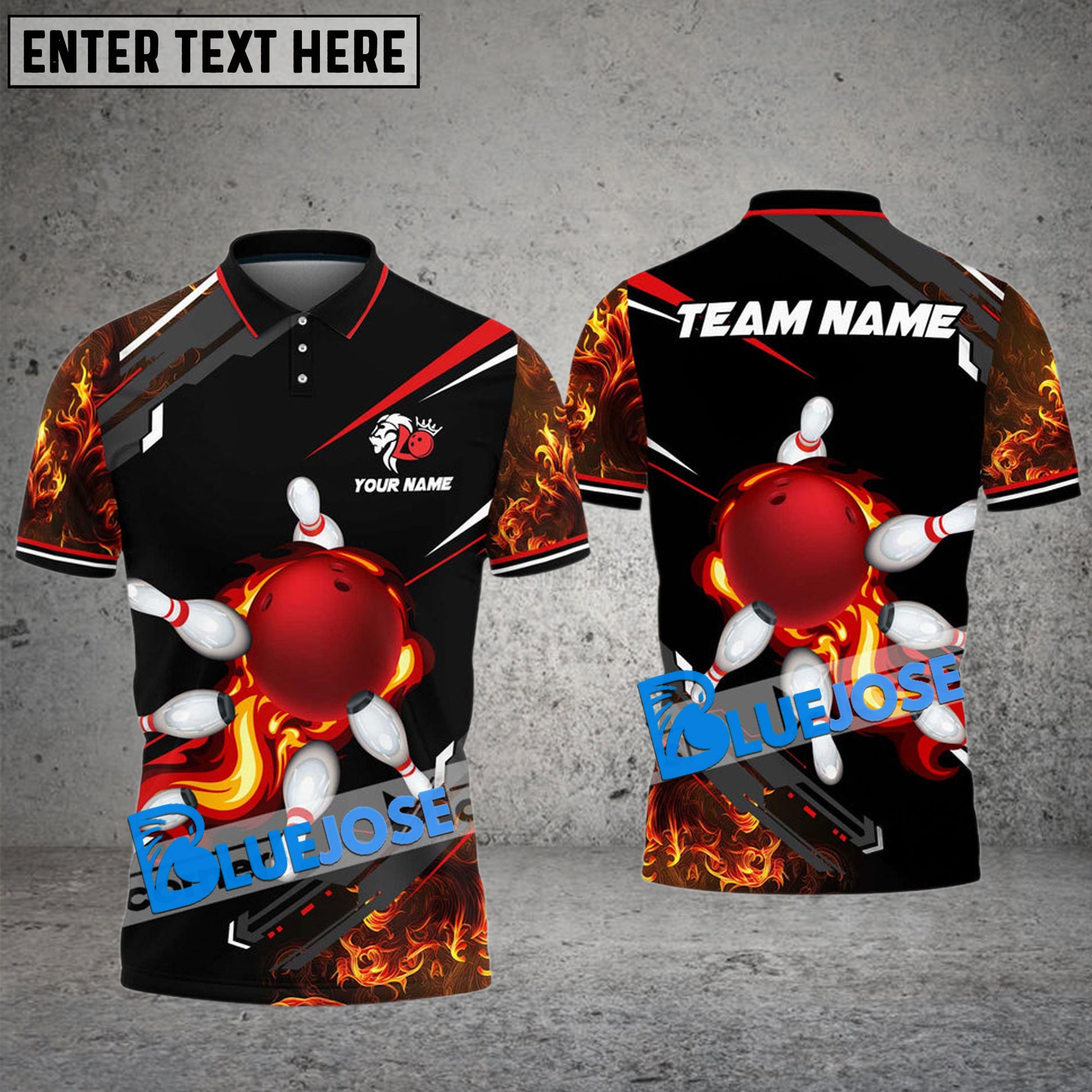 BlueJose Bowling And Pins Flame Smoke Customized Name 3D Shirt (4 Colors)