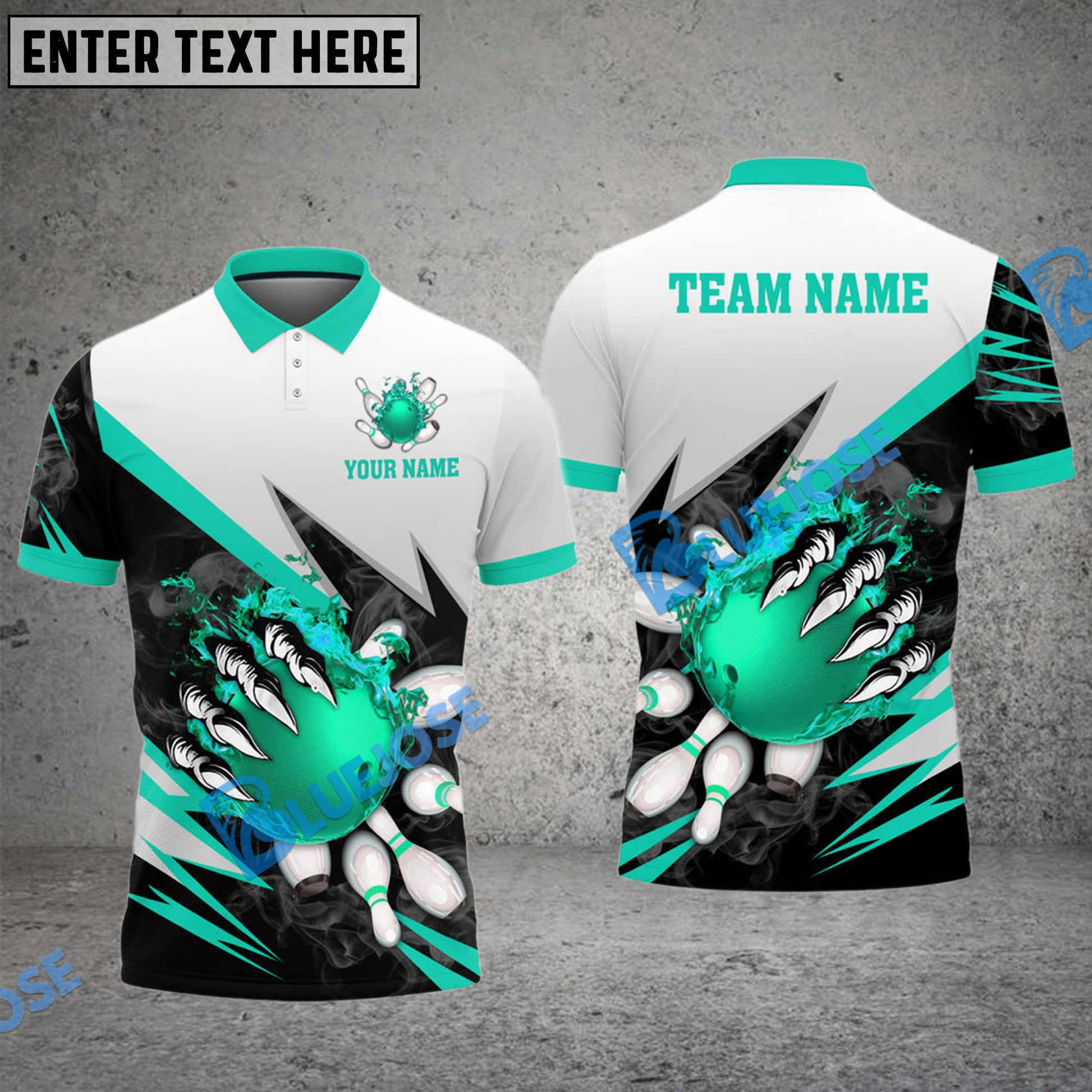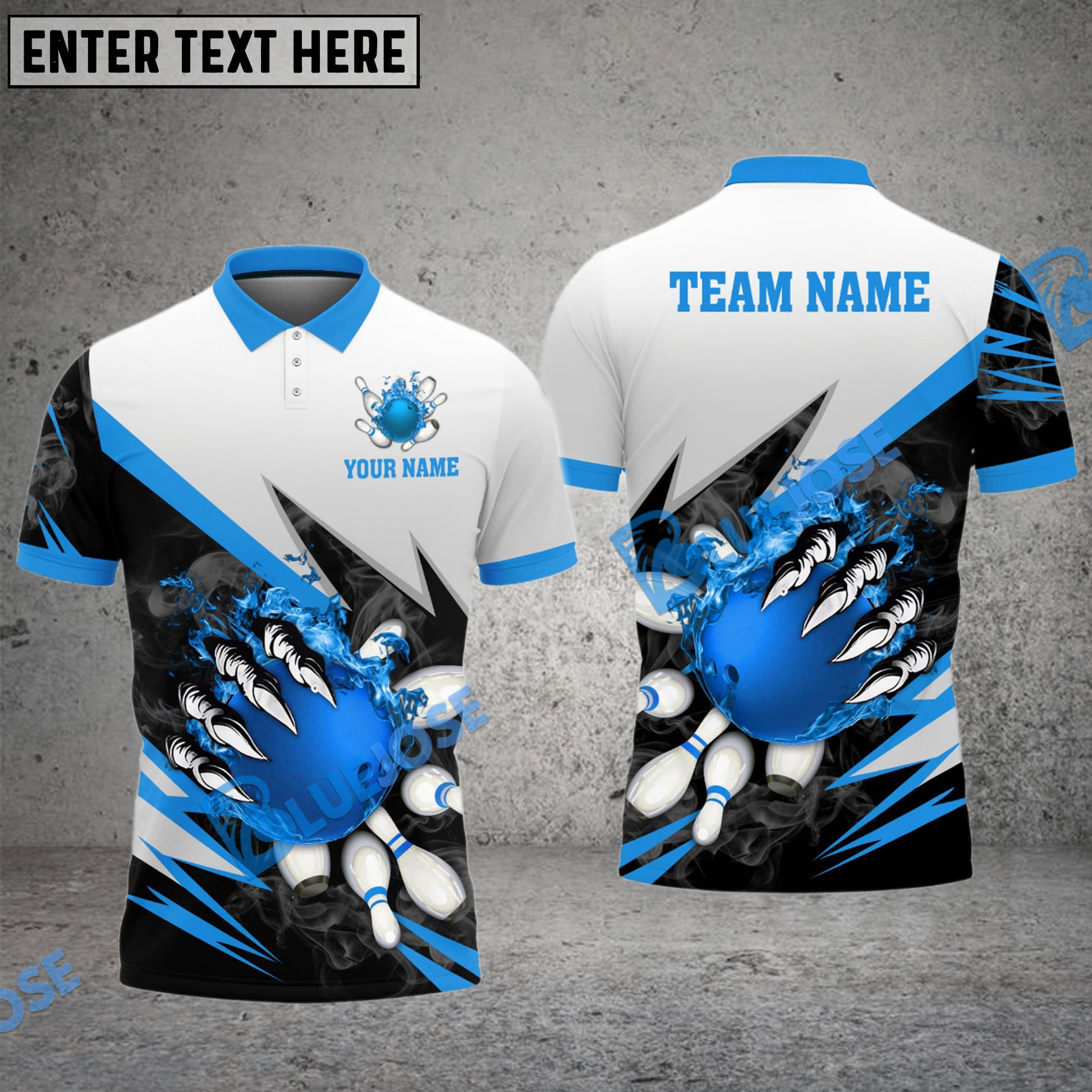 BlueJose Bowling And Pins Lightning Claws Pattern Customized Name 3D Shirt (4 Colors)