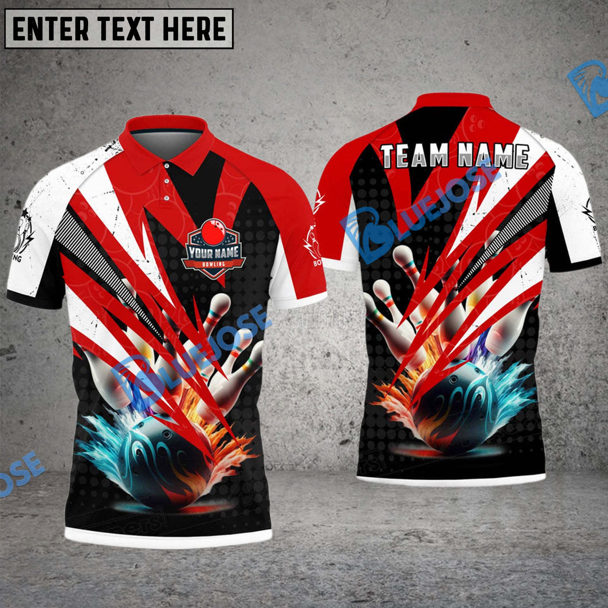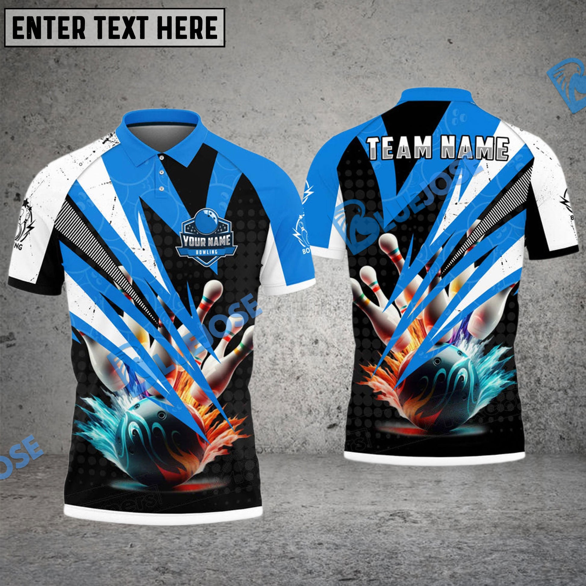 BlueJose Bowling And Pins Lightning Dot Pattern Customized Name 3D Shirt (4 Colors)