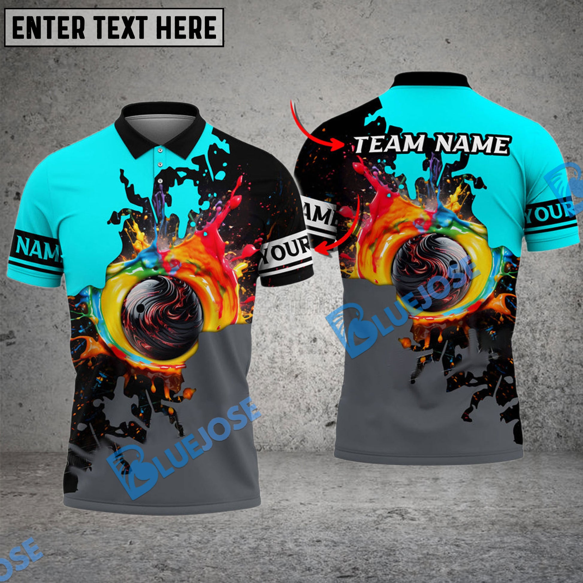 BlueJose Bowling And Pins Rainbow Painting Style Customized Name 3D Shirt (4 Colors)
