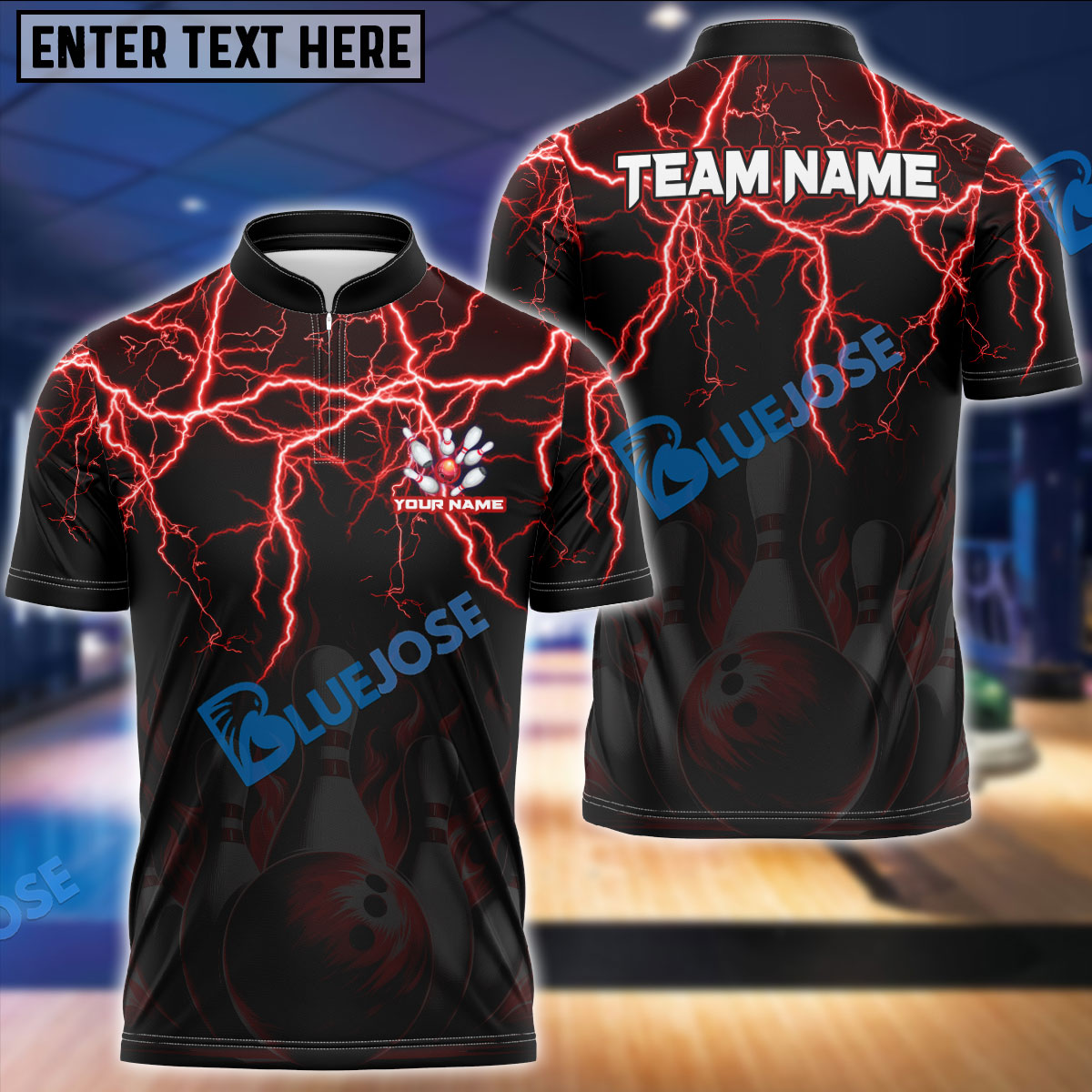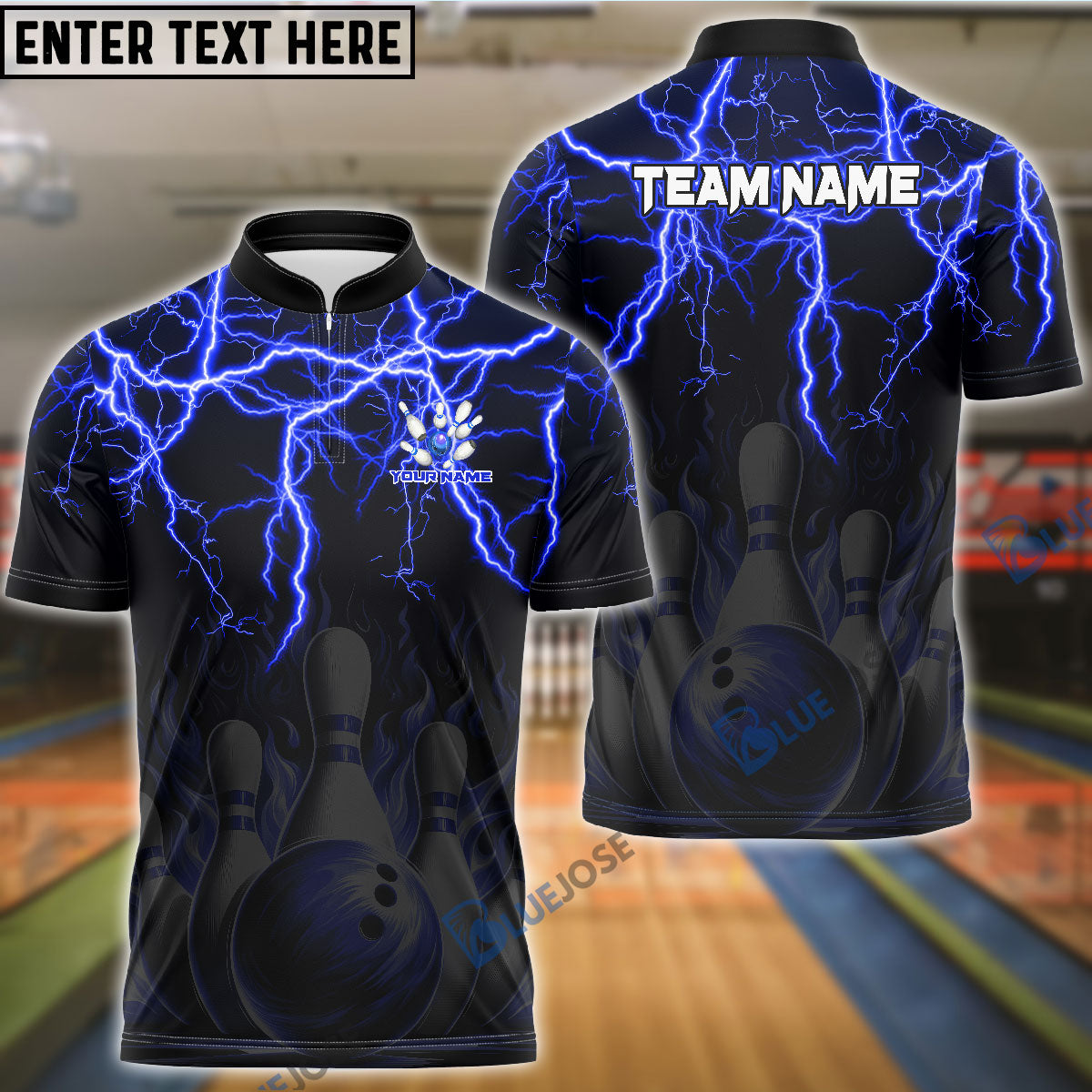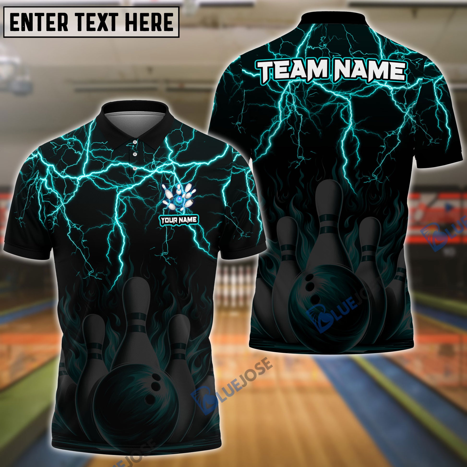 BlueJose Bowling And Pins Thunder Storm Pattern Customized Name 3D Shirt (4 Colors)