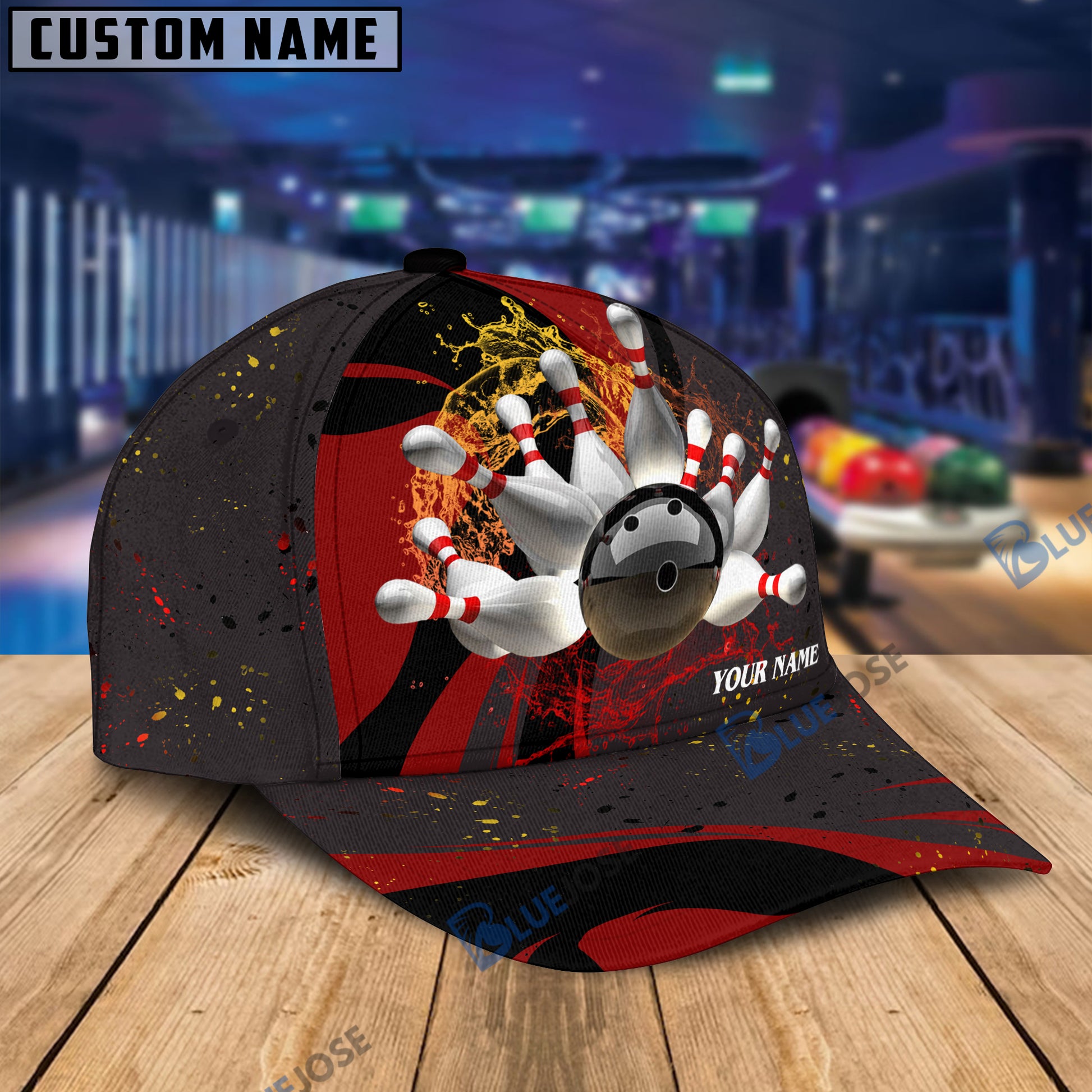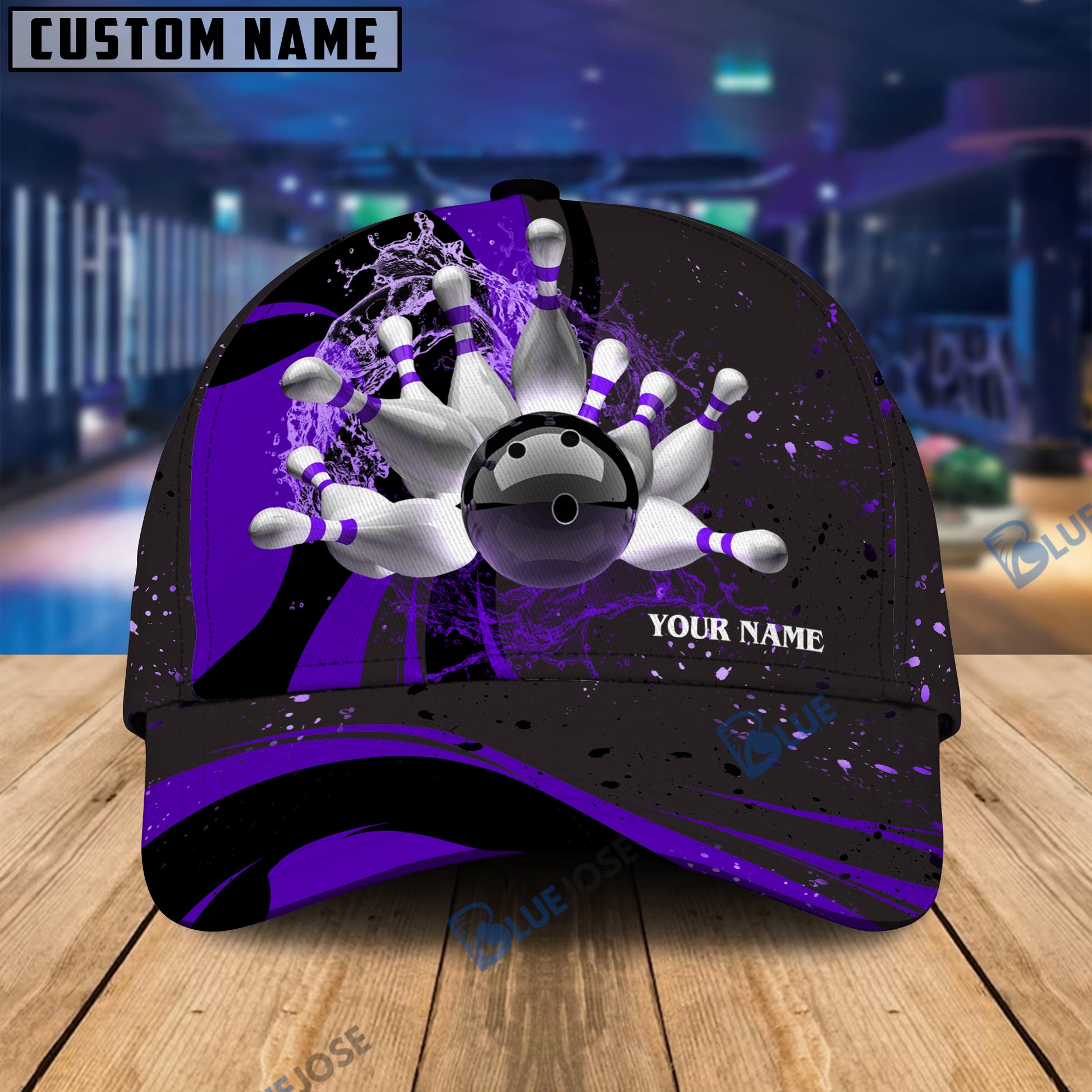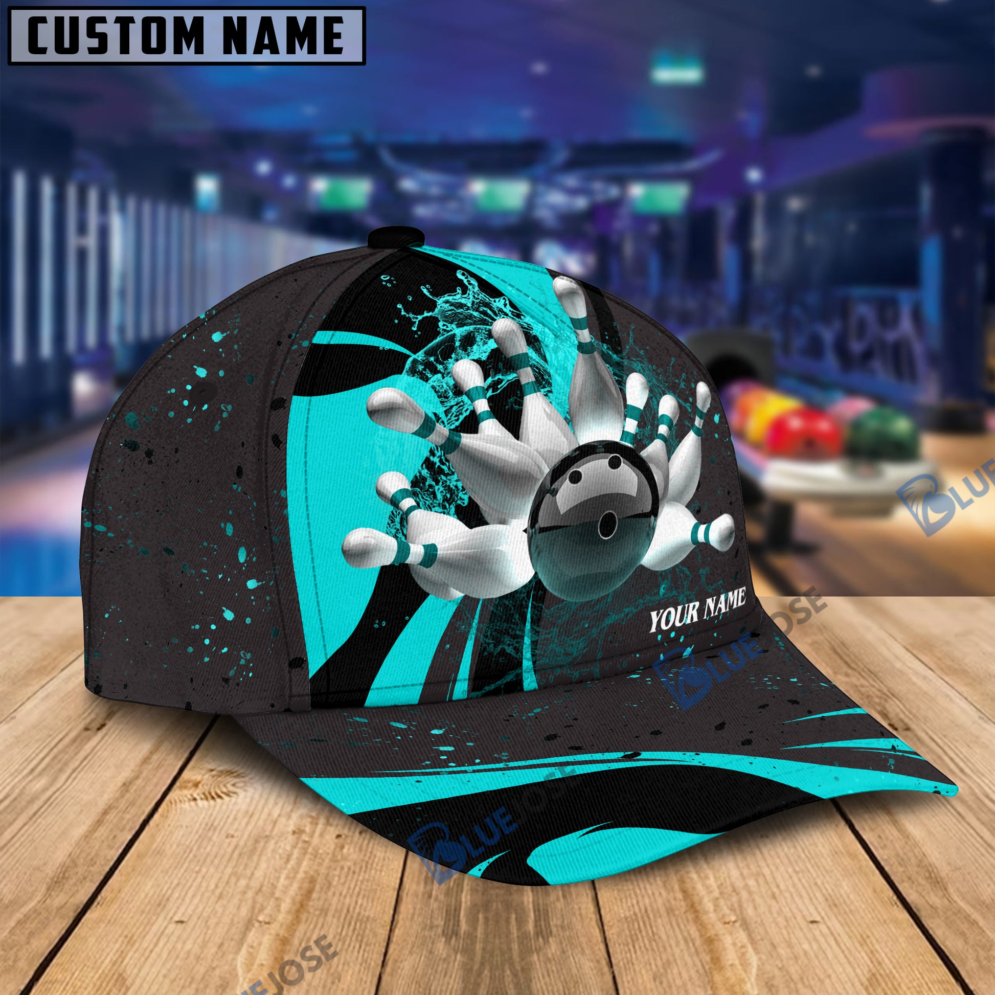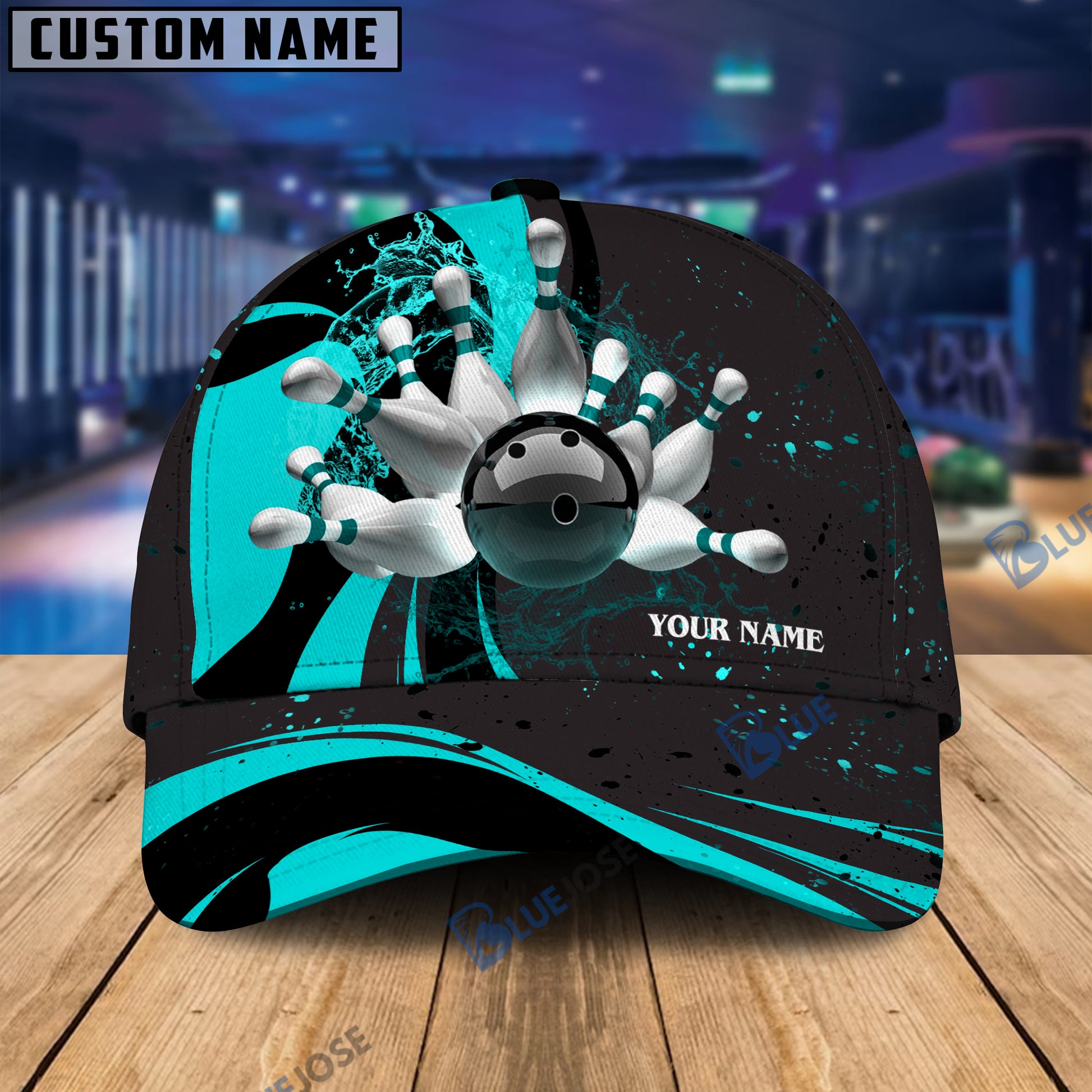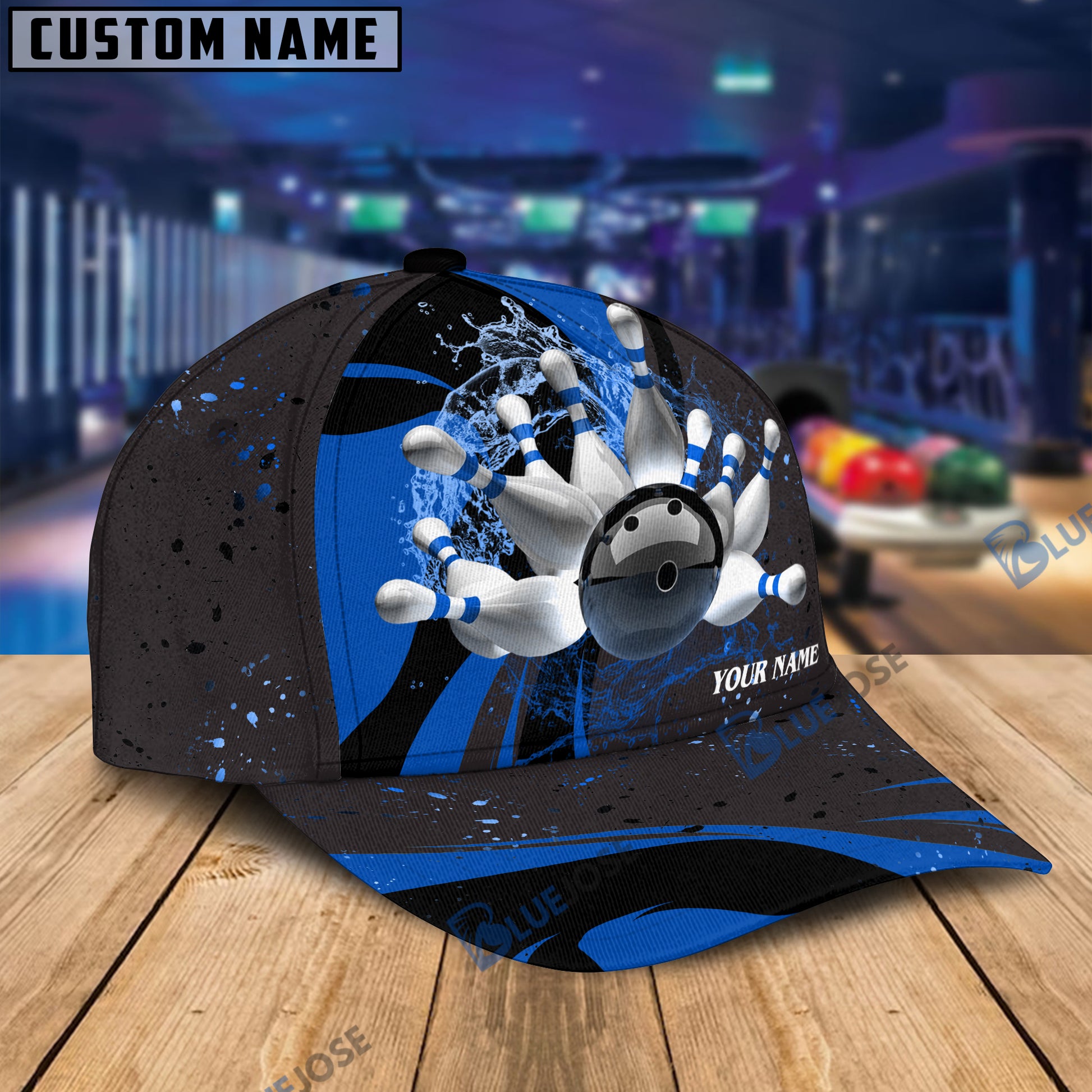 BlueJose Bowling And Pins Water Flow Multicolor Option Personalized Name Cap