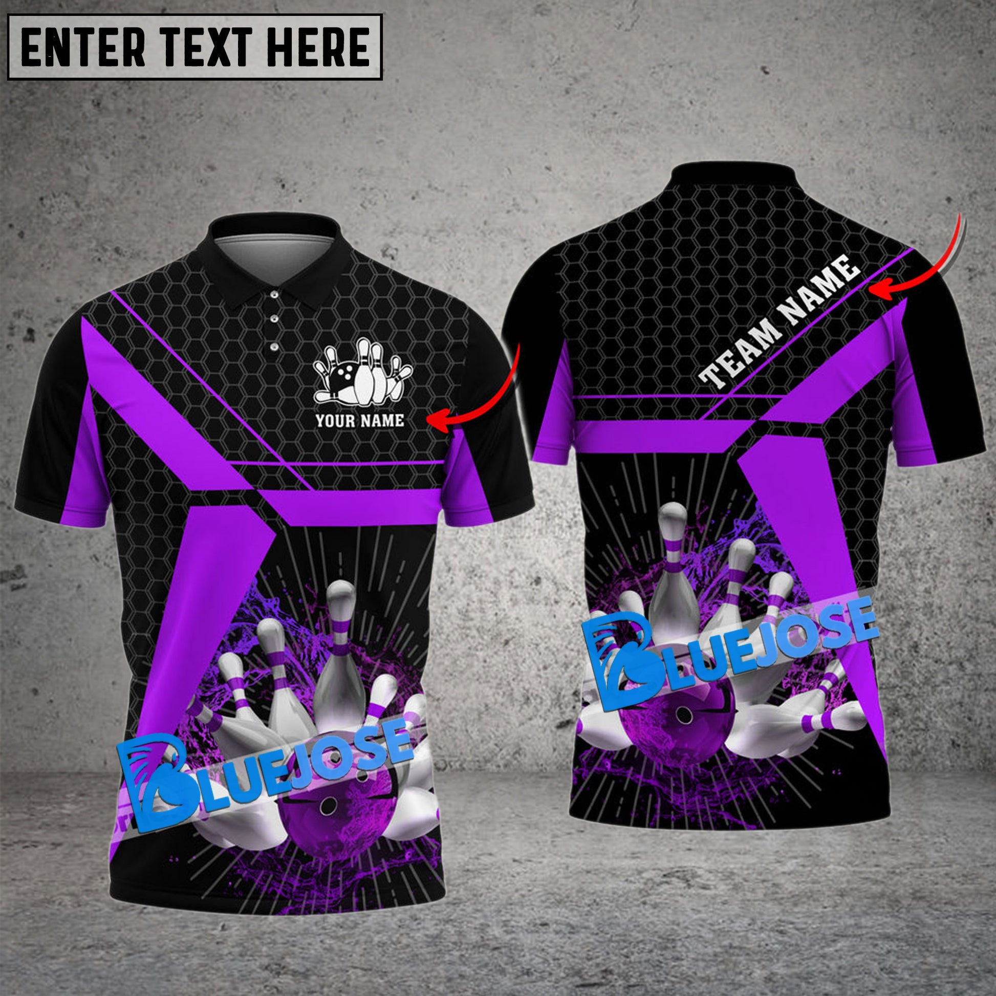 BlueJose Bowling And Pins Water Hexagon Pattern Customized Name 3D Shirt (4 Colors)