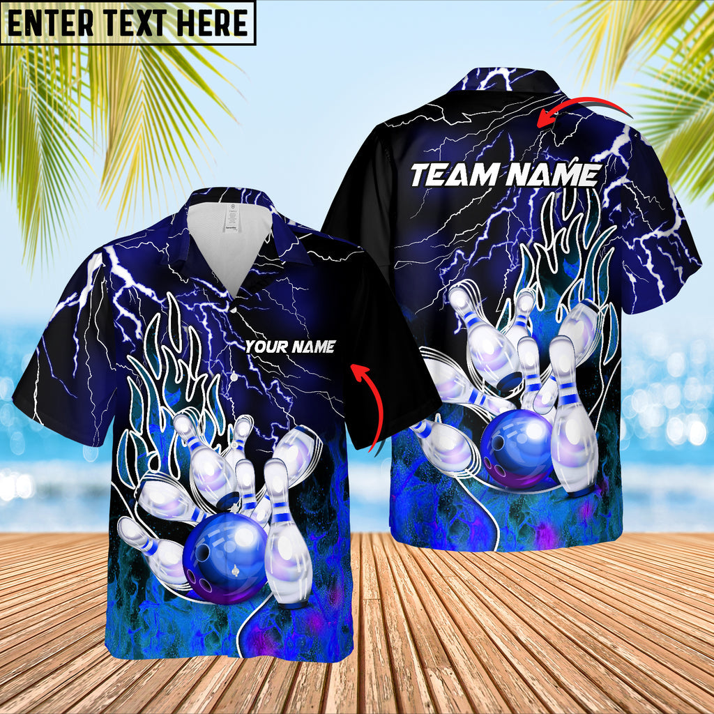BlueJose Bowling Ball And Pins Thunder And Fire Pro Multicolor Option Customized Name Hawaiian Shirt (5 Colors)