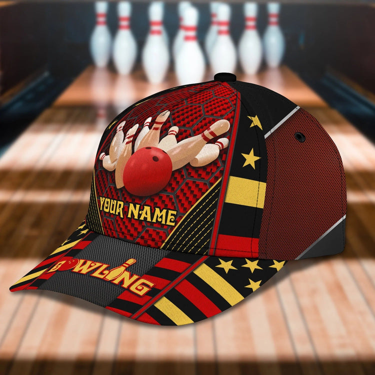 BlueJose Bowling Crash And Pins Multicolor Personalized Name Cap
