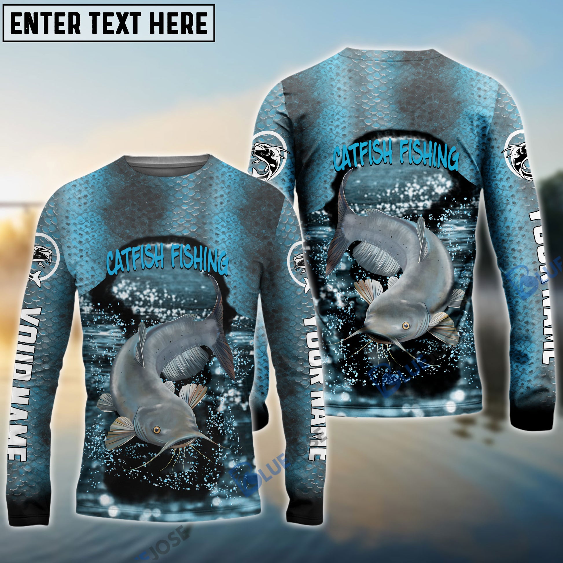BlueJose Catfish Fishing Light Blue Custom Long Sleeve Performance Fishing Long Sleeves