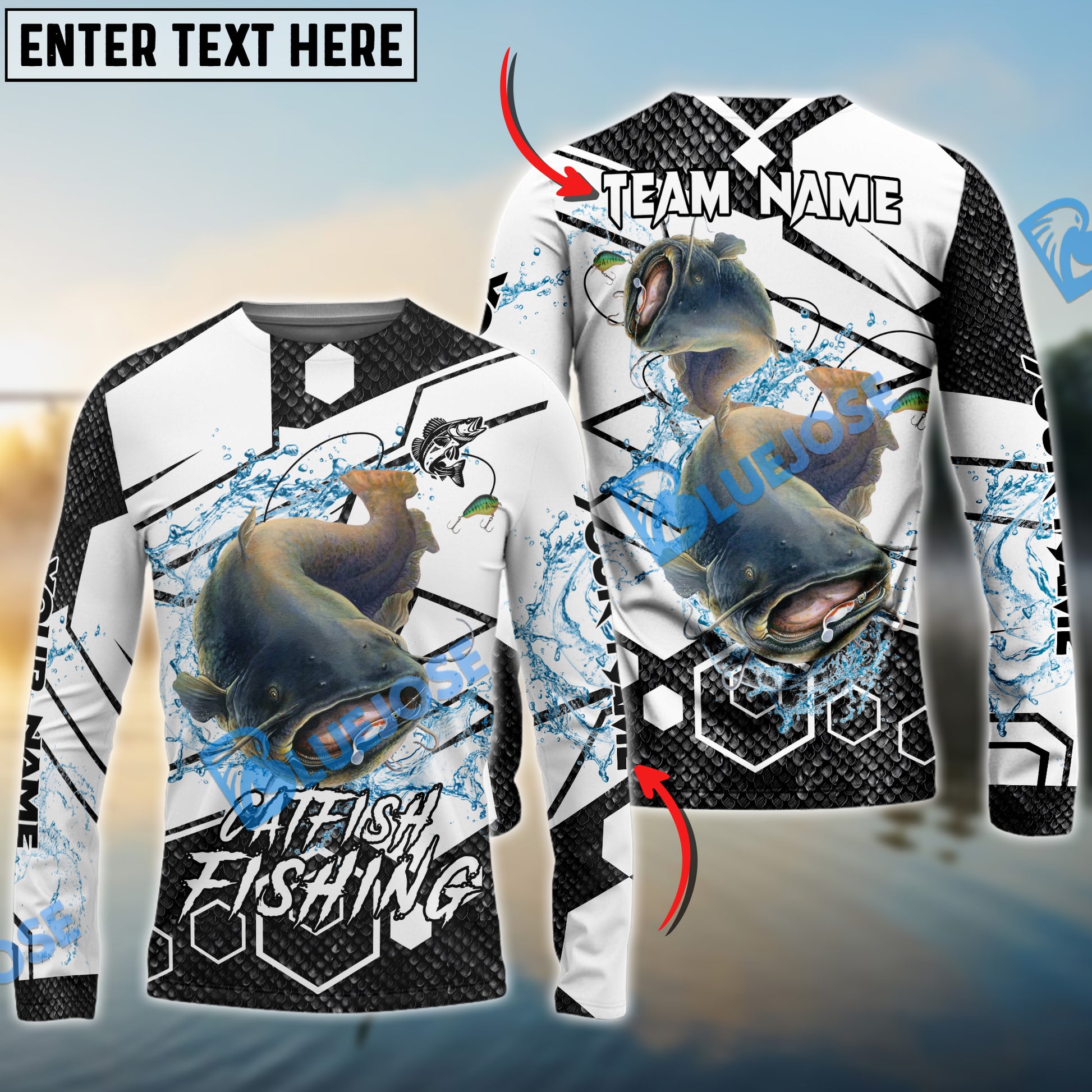 Bluejose Catfish Fishing White Gray Black Hexagon Sport Custom Name & Team Name 3D Shirts