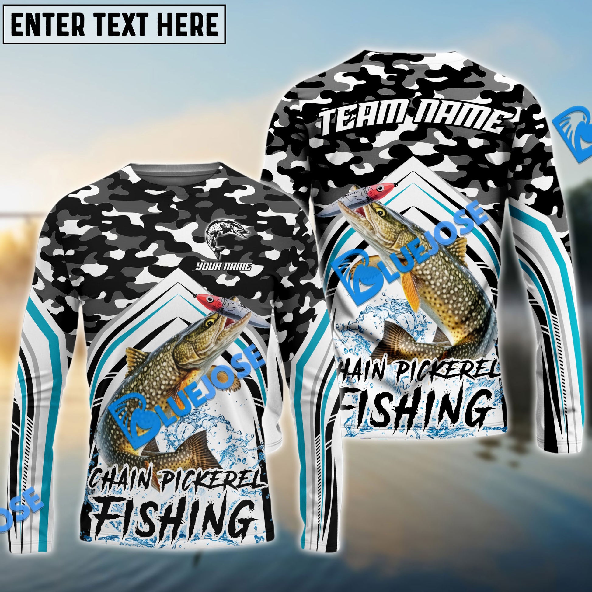 Bluejose Chain Pickerel Fishing Black Camo Sport Custom Name & Team Name 3D Shirts
