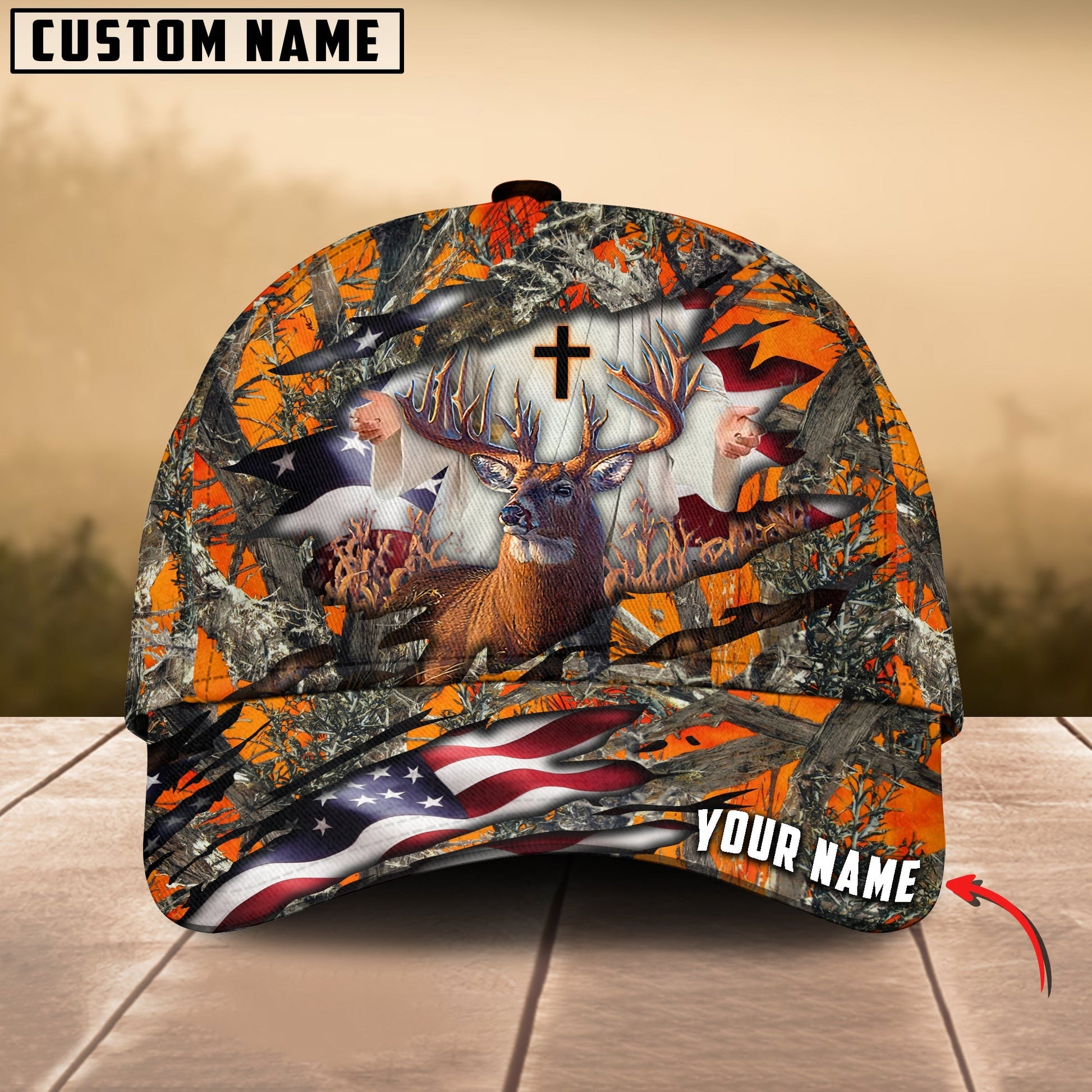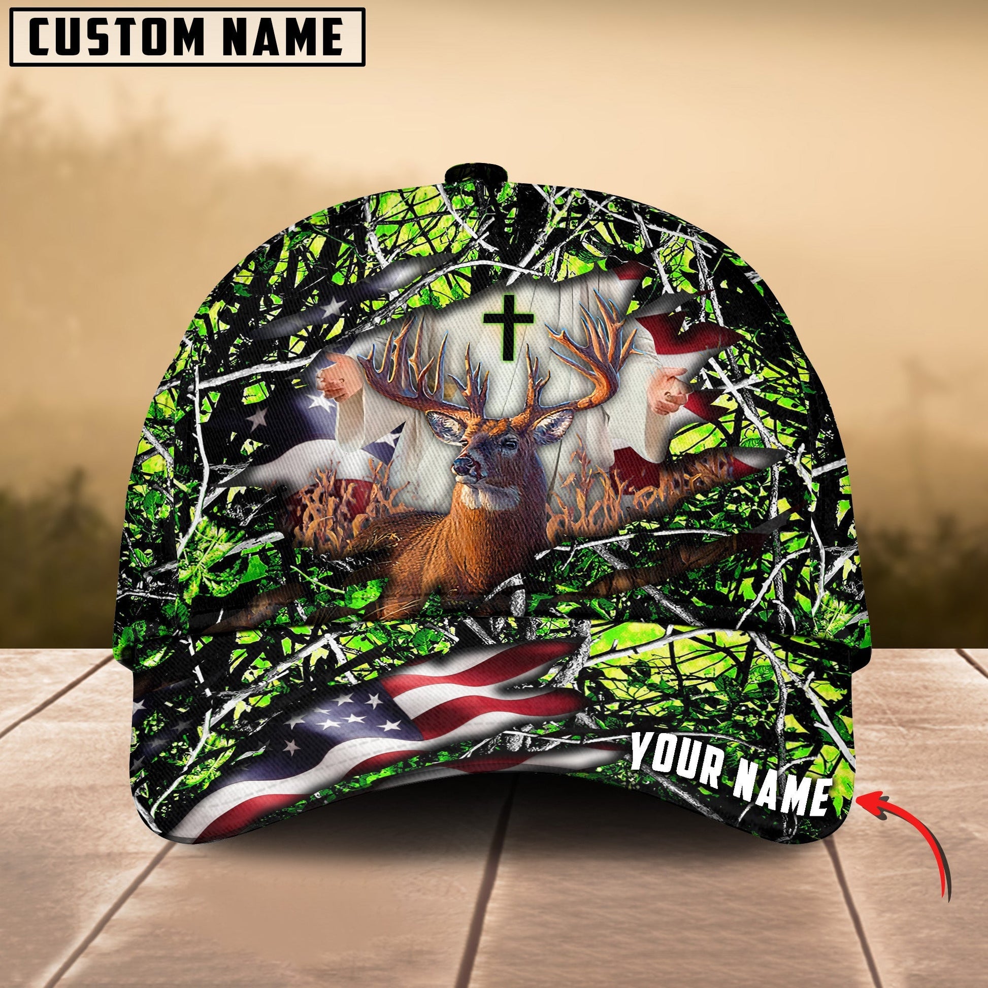BlueJose Colorful God America Hunting Deer Multicolor Personalized Cap