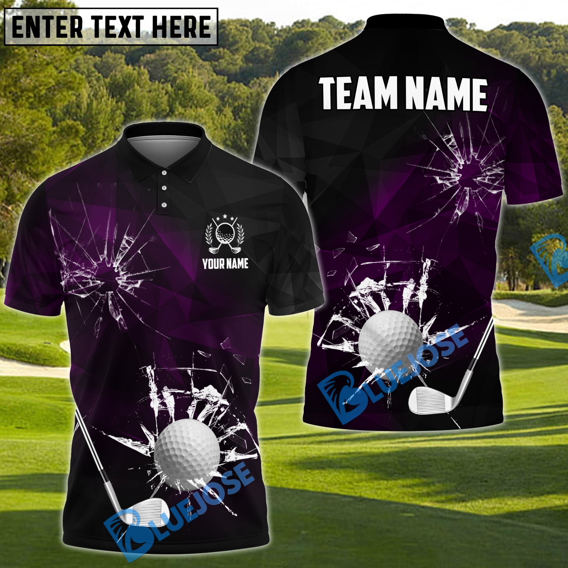 BlueJose Cracked Glass Effect Golf Shirt, Customized Name & Team Name 3D Shirts (4 Colors)