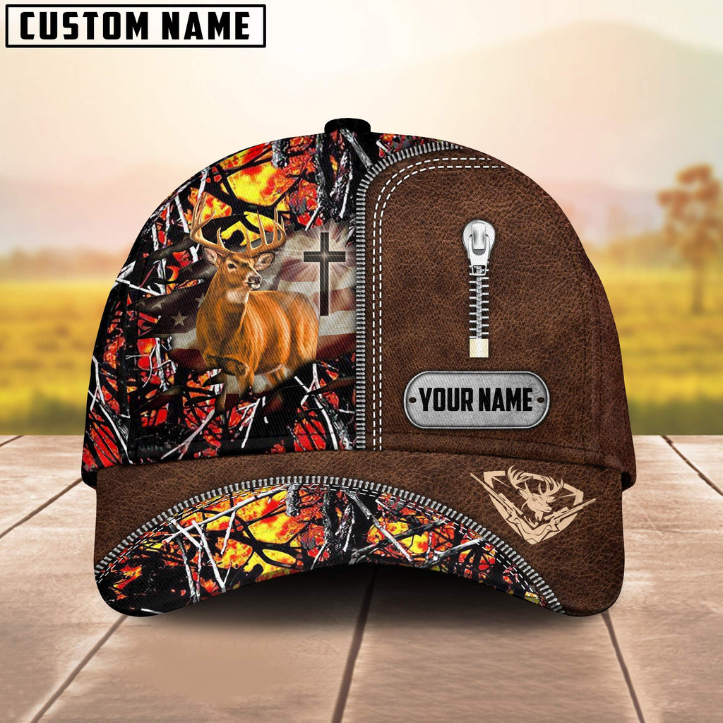 BlueJose Cross America Hunting Deer Zipper Leather Pattern Multicolor Personalized Cap