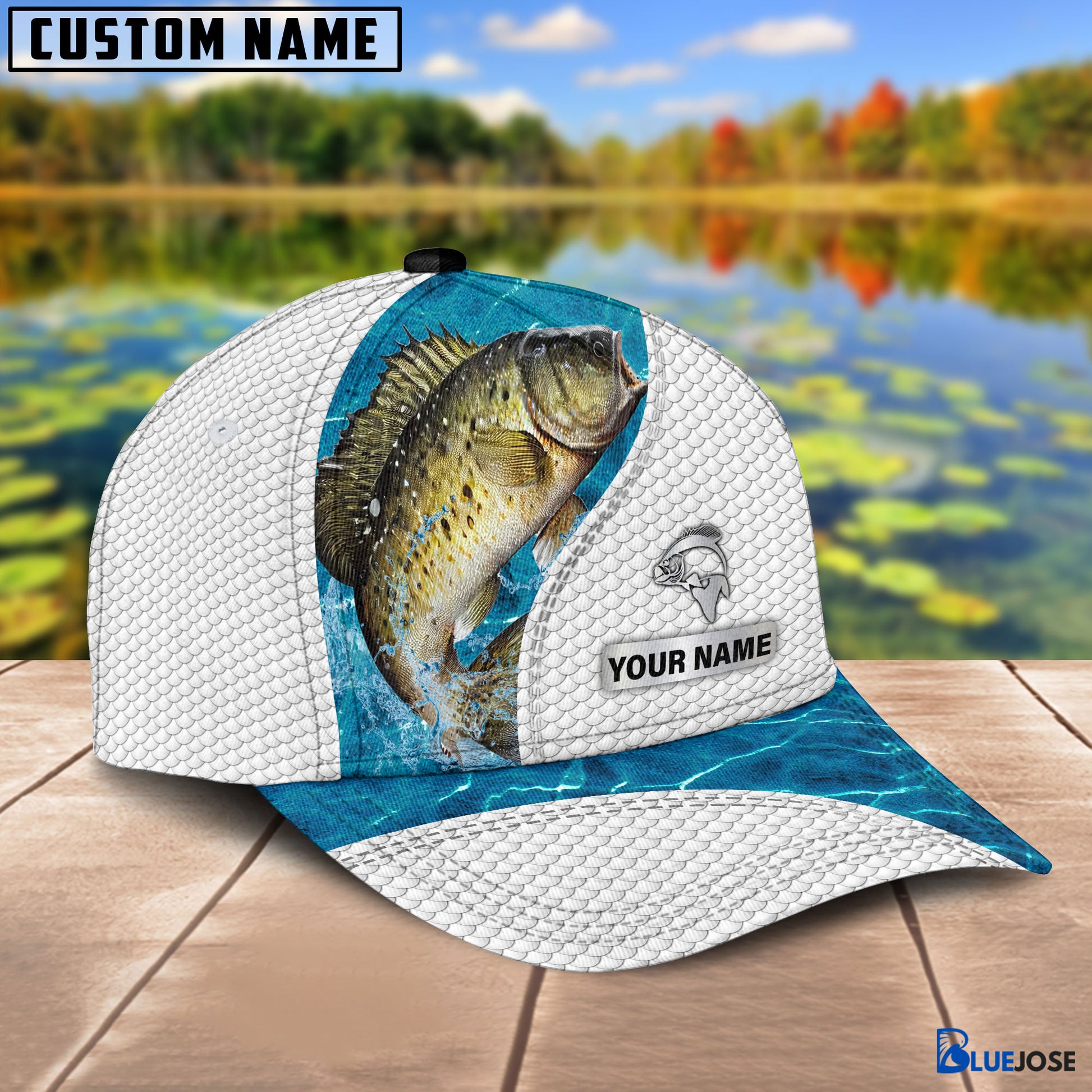 BlueJose Custom Name Crappie Fishing Blue Water Cap