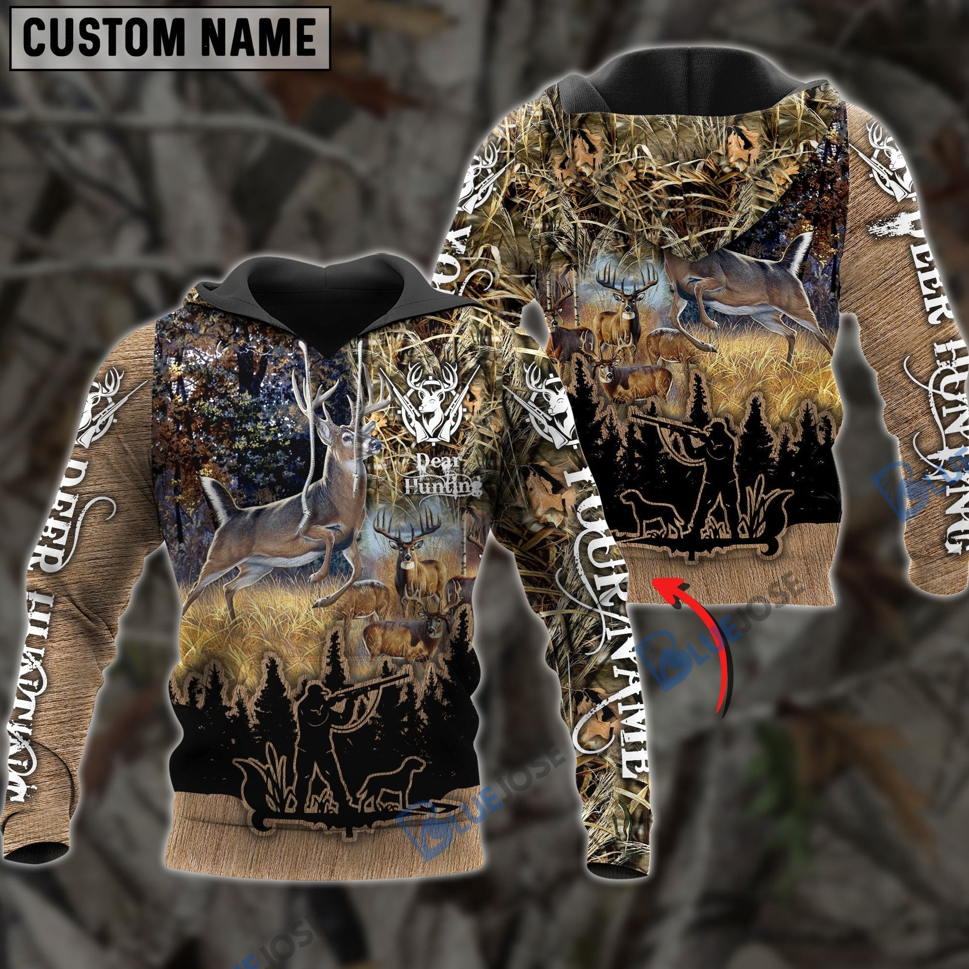 BlueJose Custom Name Deer Hunting Camo Style Shirt 3D Shirt