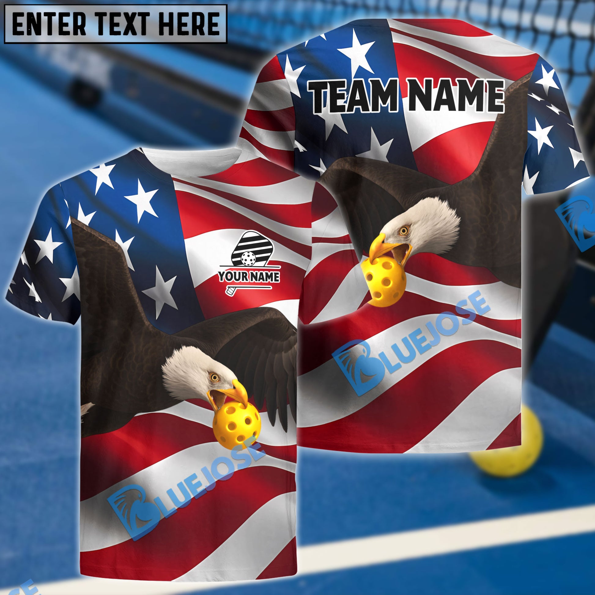 BlueJose Custom Name, Team Name 3D Pickleball American Flag Eagle Performance Unisex Shirt