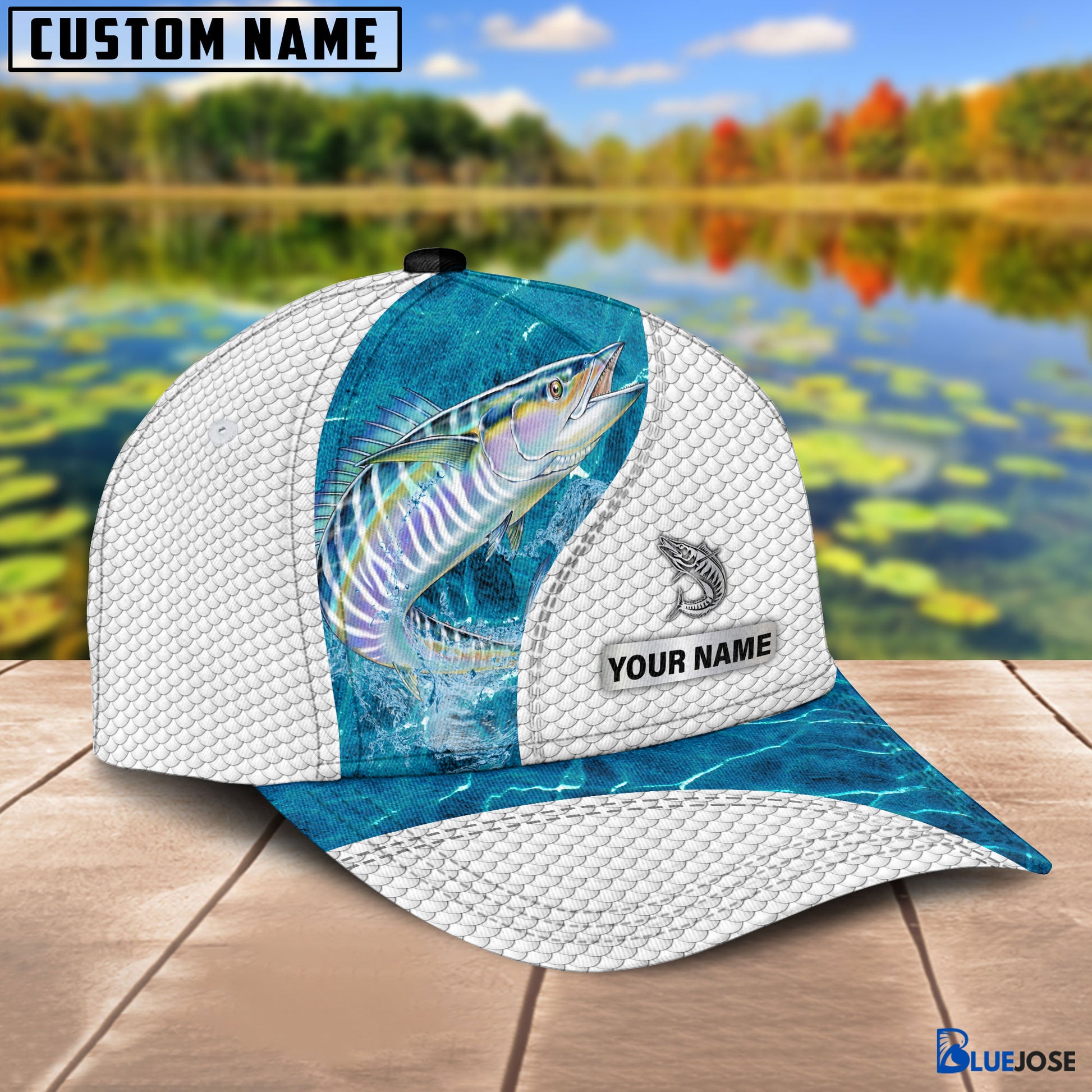 BlueJose Custom Name Wahoo Fishing Blue Water Cap