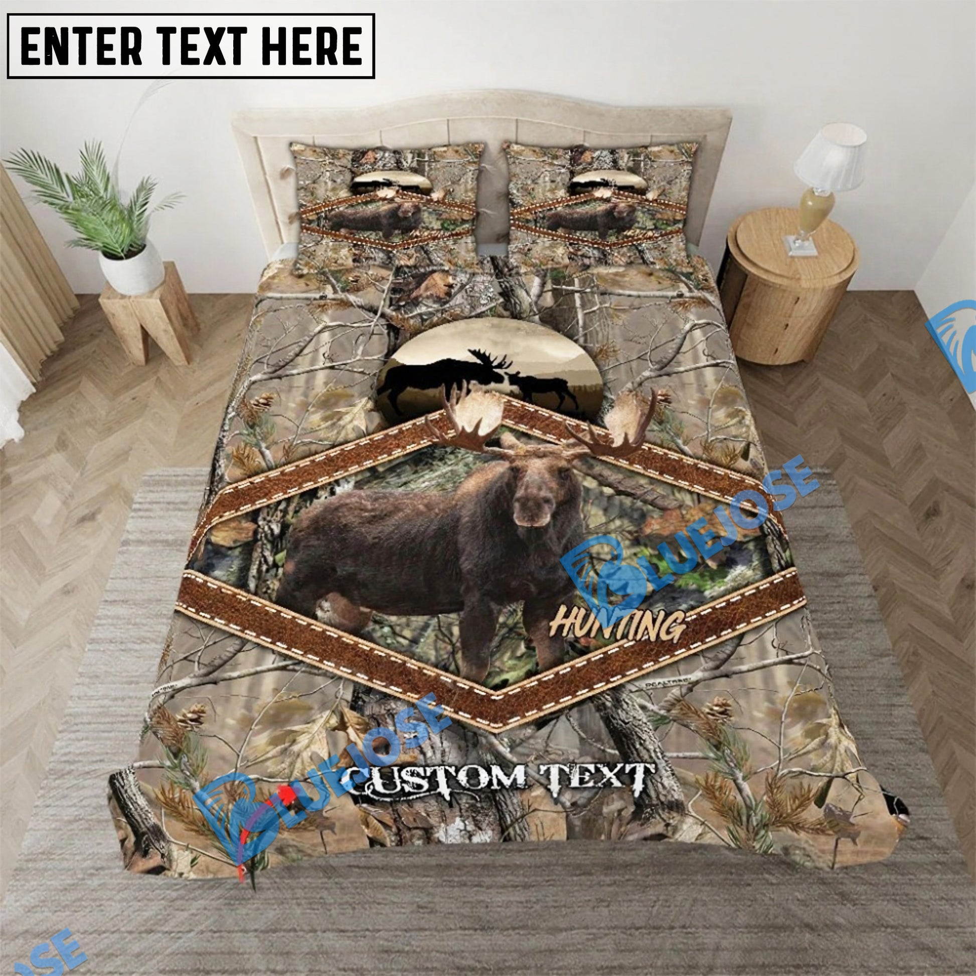 Bluejose Custom Text Moose Hunting Leather Camo Pattern Bedding Set 3D All Over Printed ( 4 Colors )