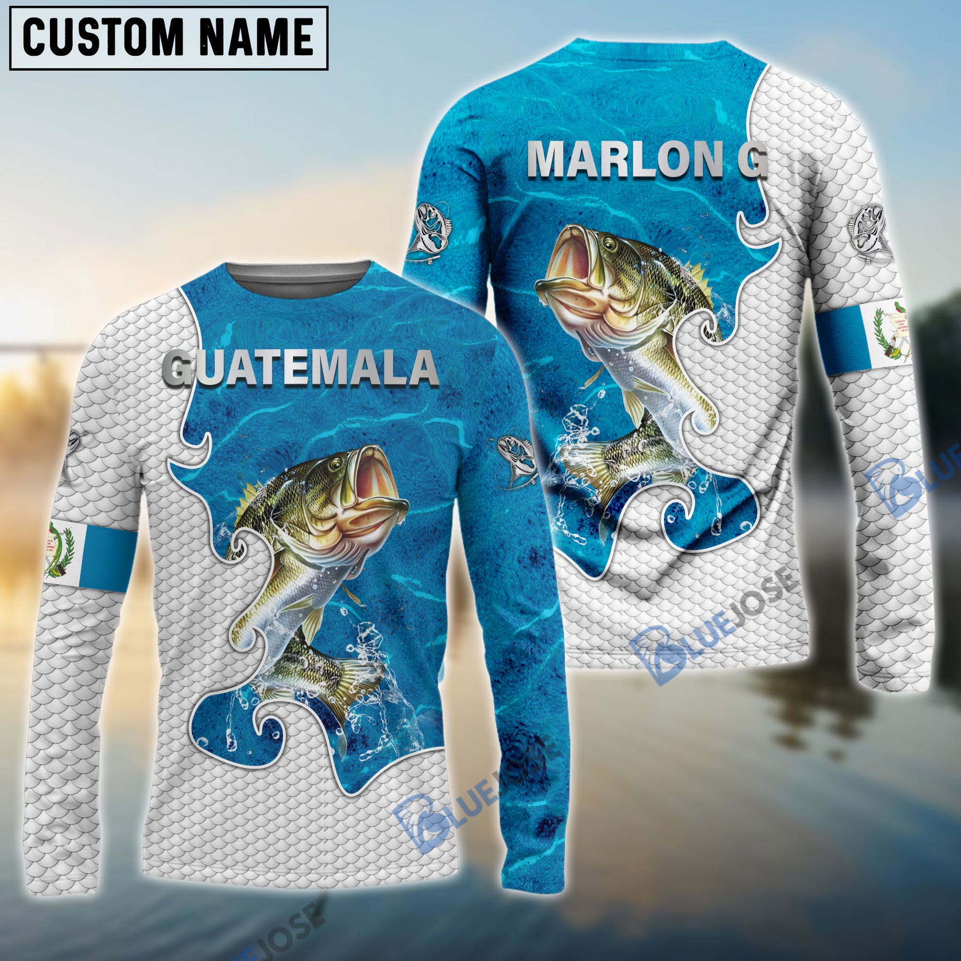 BlueJose Customize Name Bass Fishing Guatemala Flag Blue Water 3D Shirt
