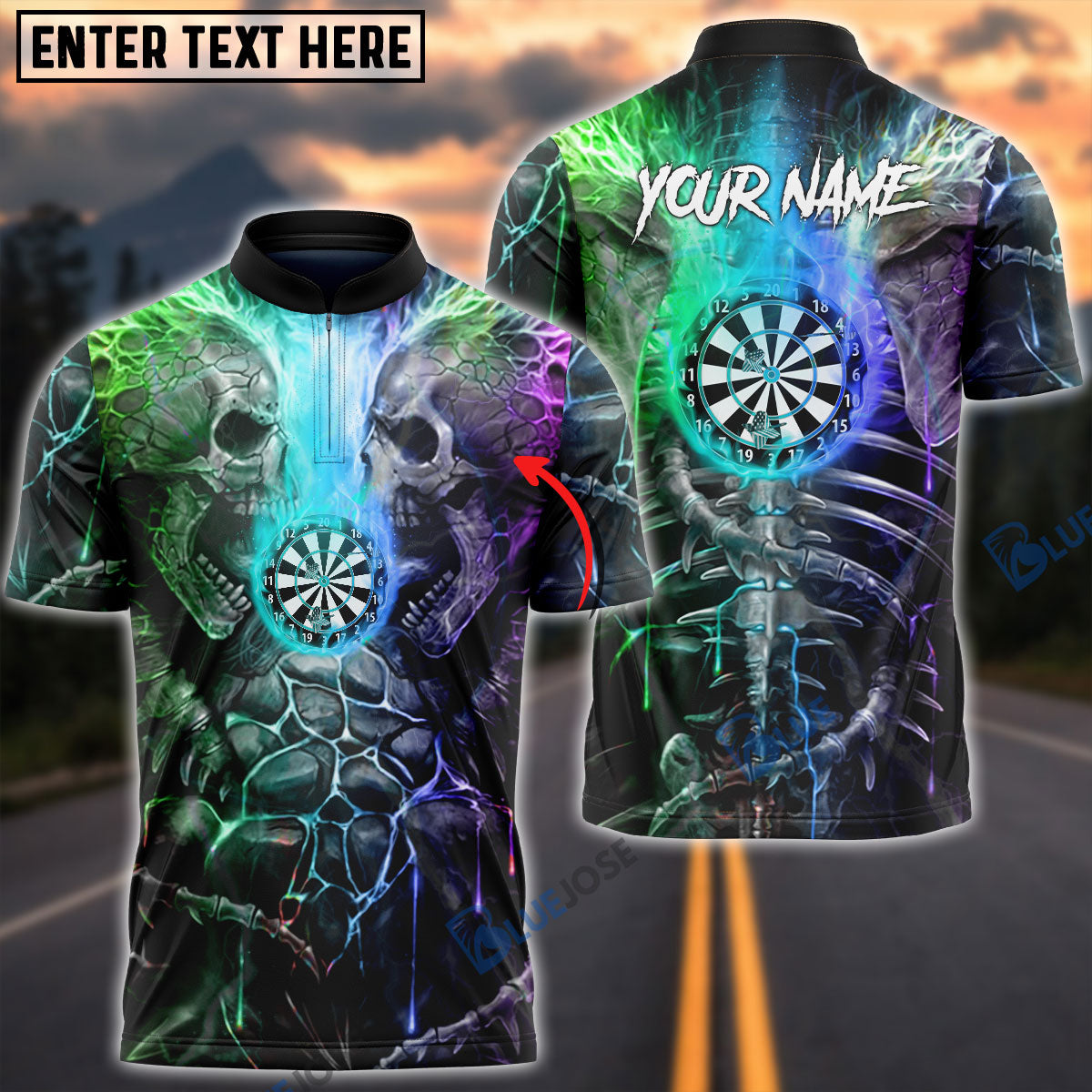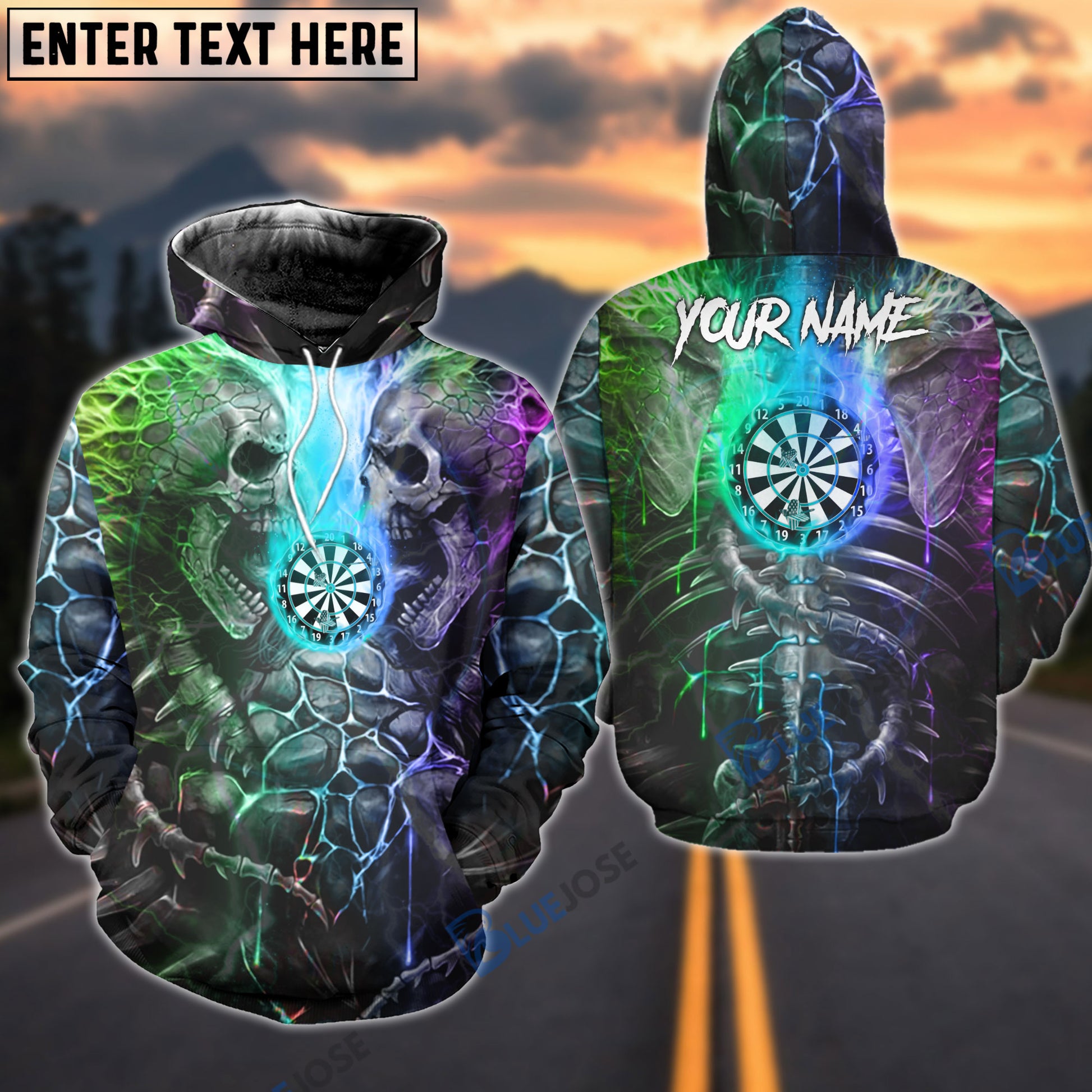 BlueJose Dart Skull Rainbow Personalized Name 3D Shirt