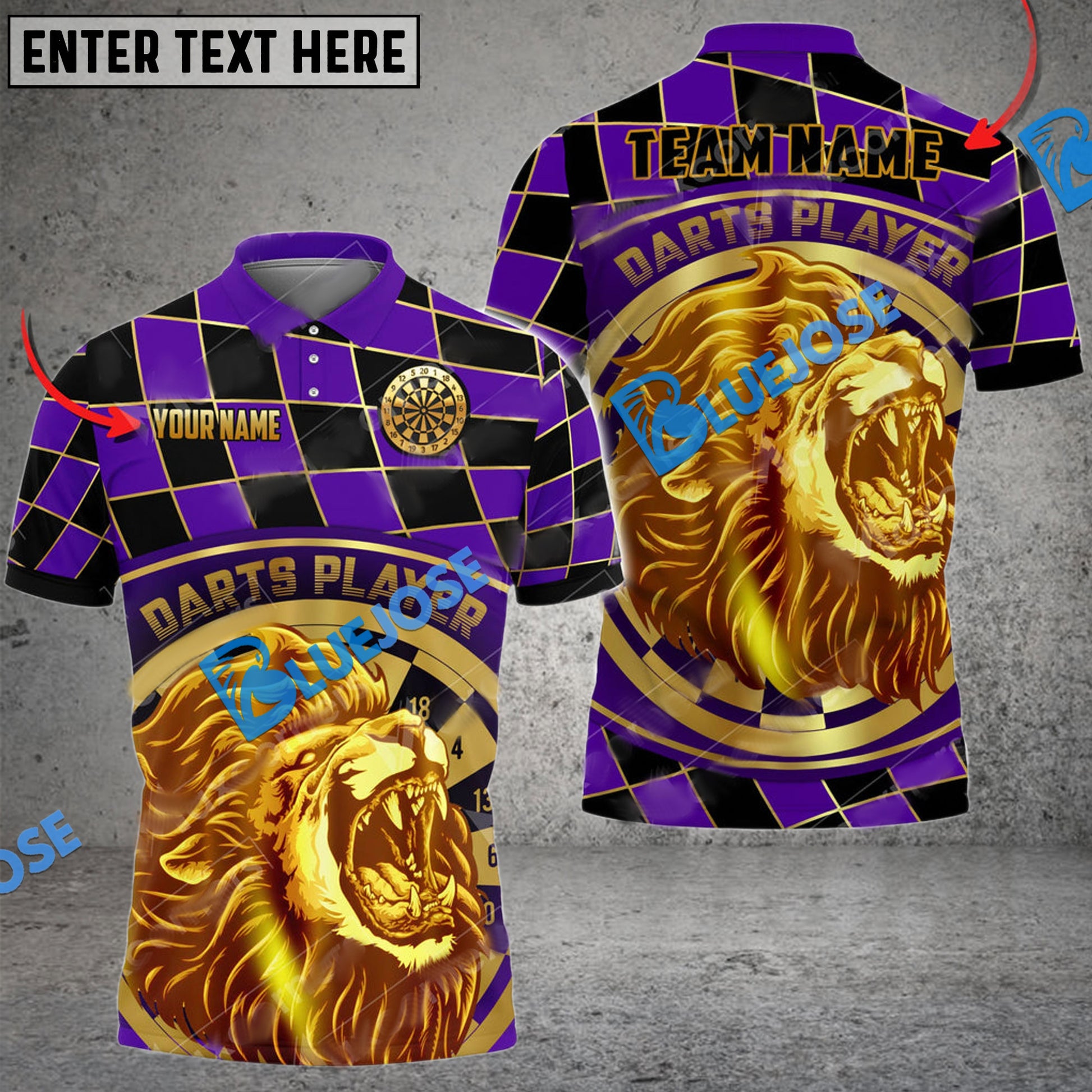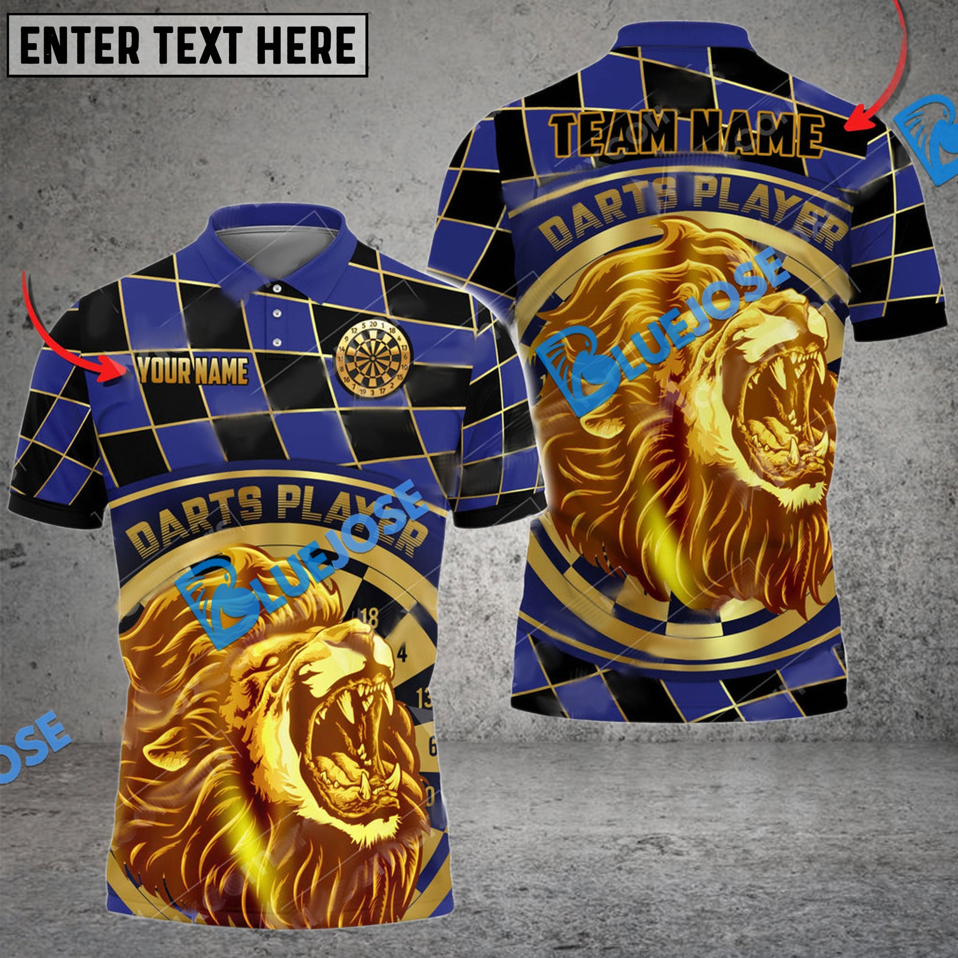 BlueJose Darts Lion Caro Pattern Personalized Name, Team Name 3D Shirt (4 Colors)