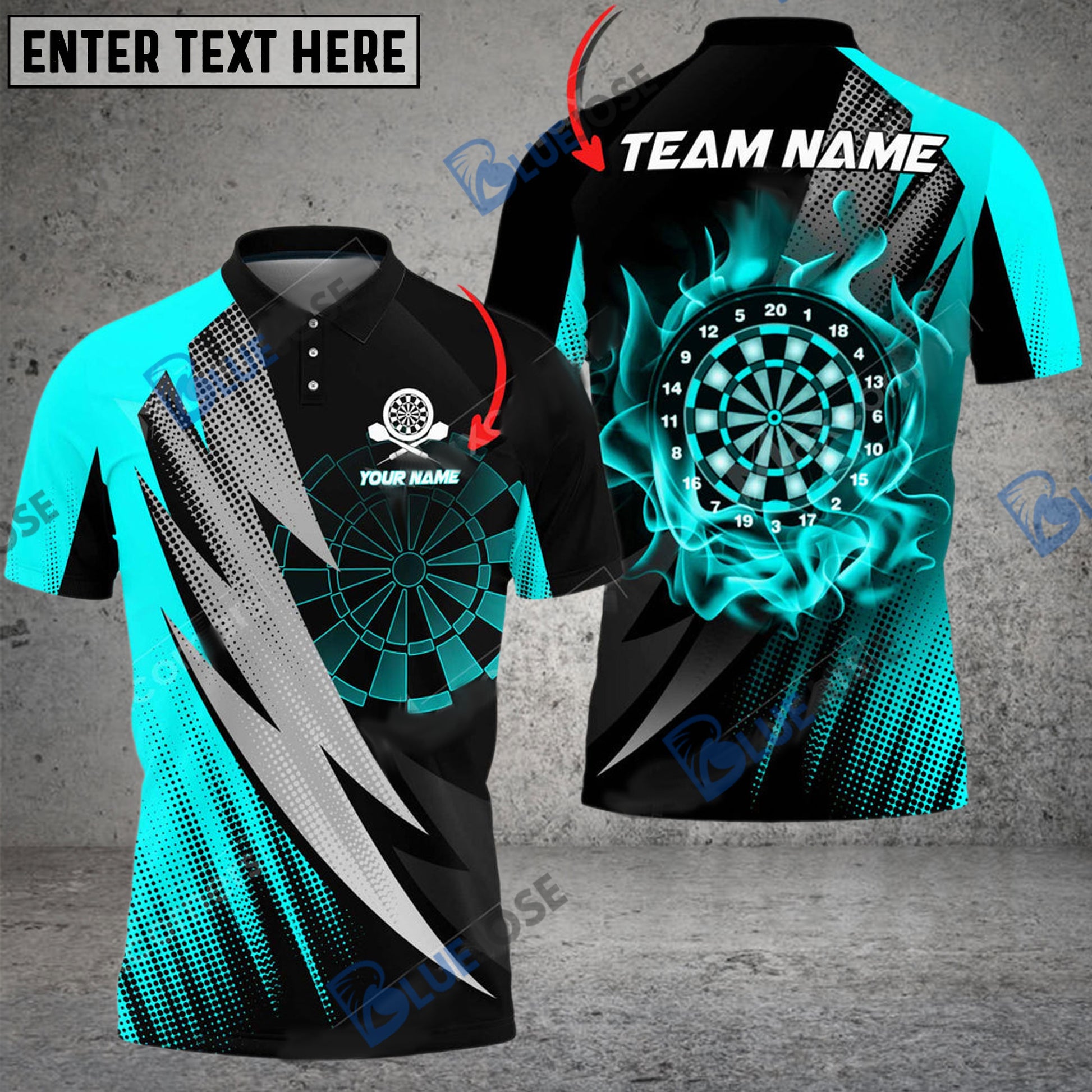 BlueJose Darts Thunder Fang Flame Personalized Name, Team Name 3D Shirt (4 Colors)