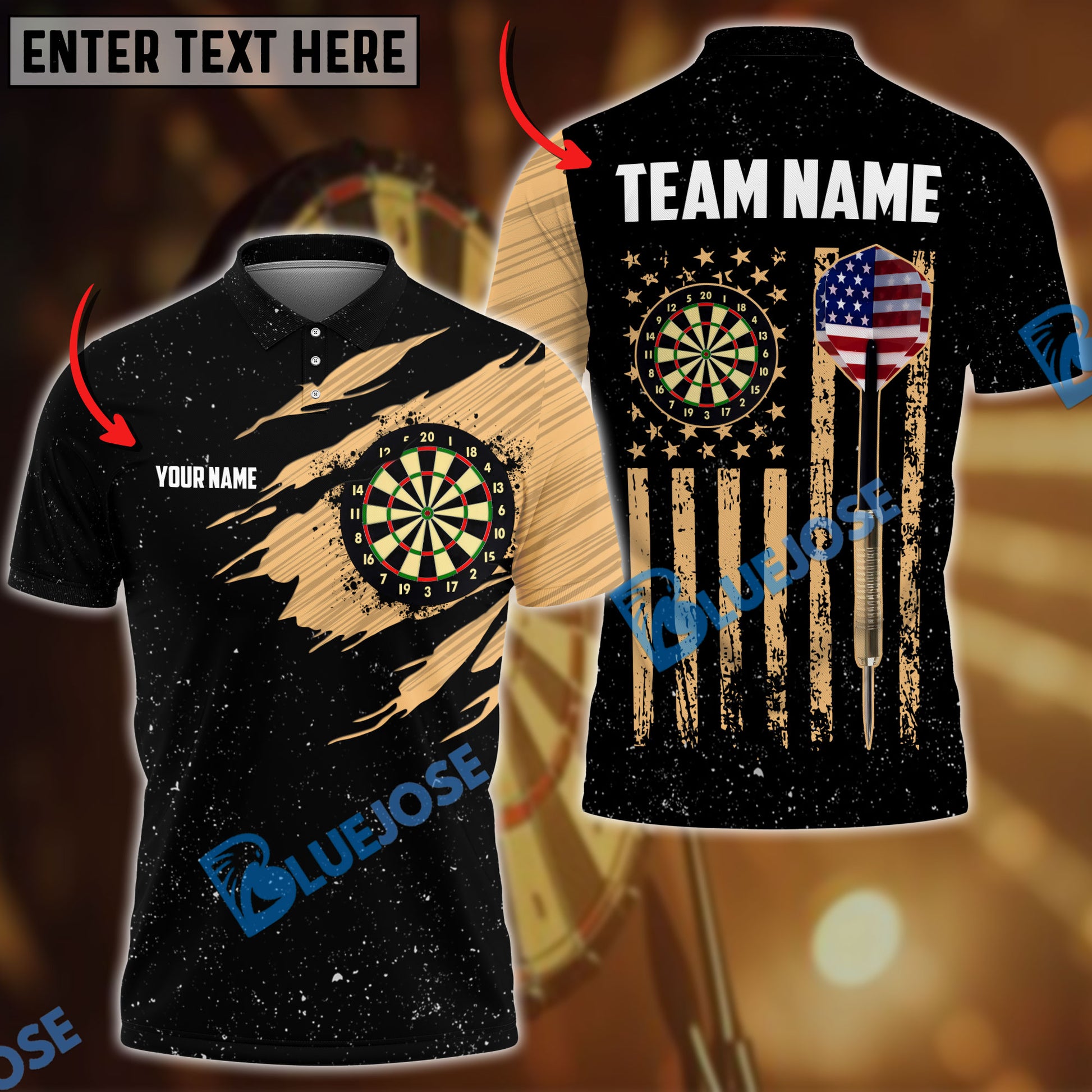 BlueJose Darts USA Flag Golden Personalized Shirt