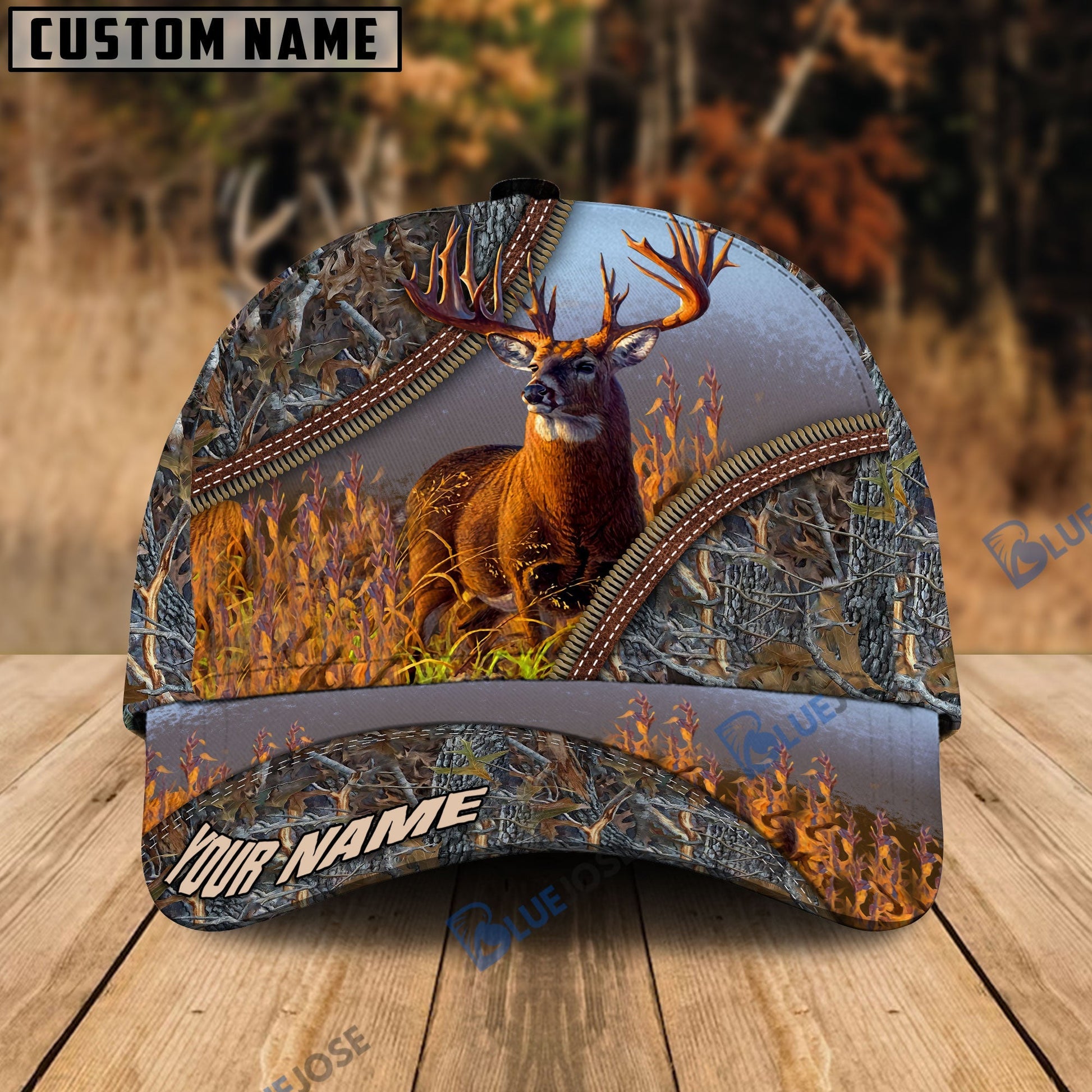 BlueJose Deer Hunting Forest Pattern Personalized Name Cap
