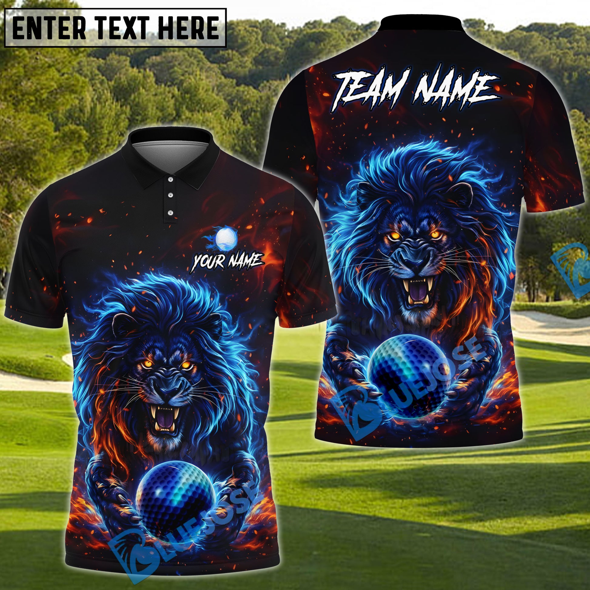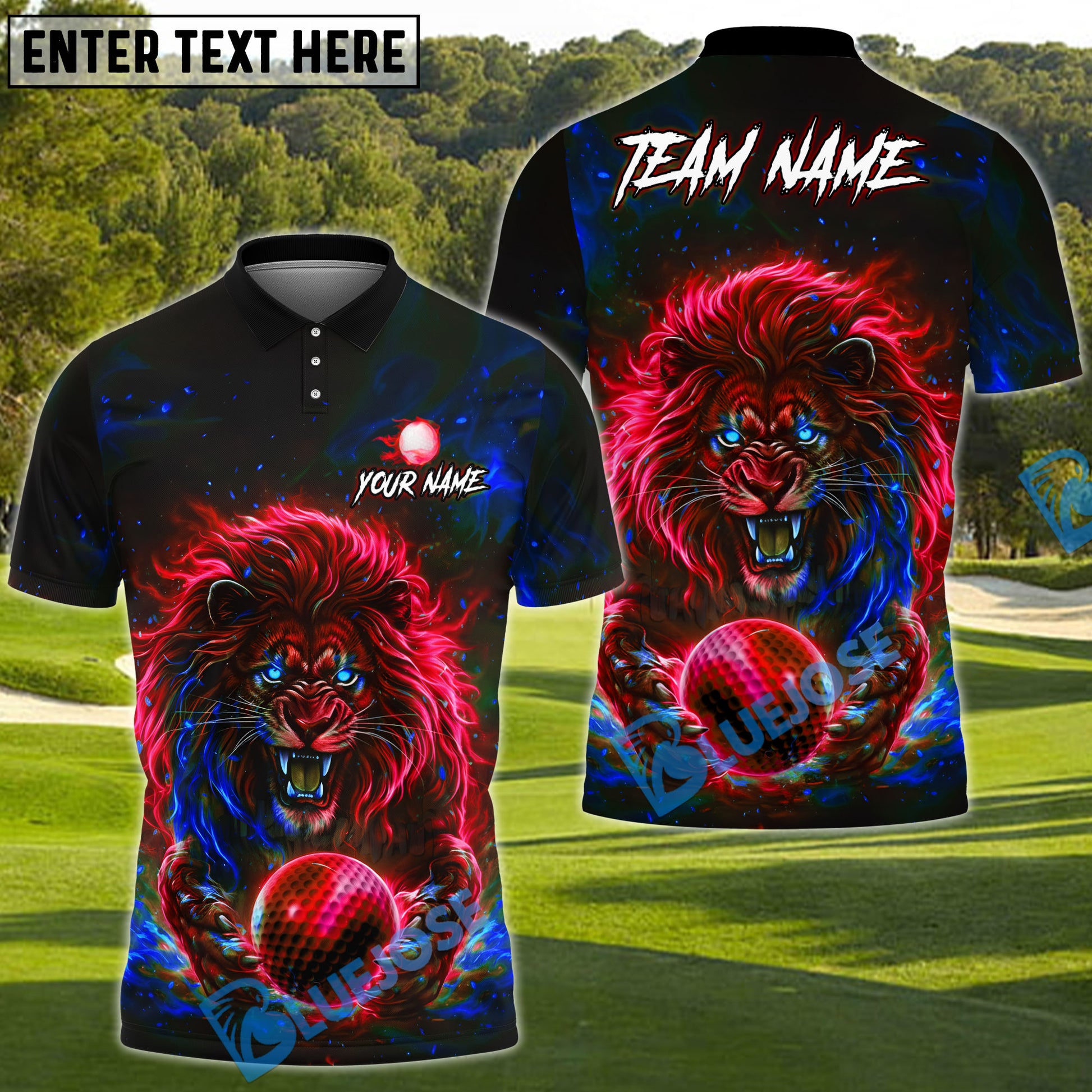 BlueJose Electric Lion Golf Polo Customized Name, Team Name 3D Shirts (4 Colors)