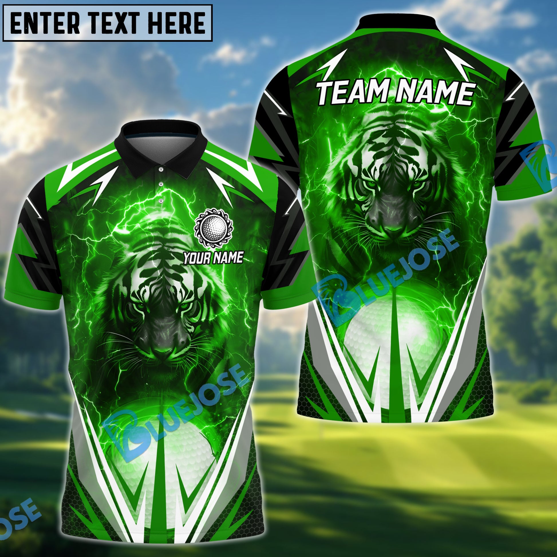 BlueJose Electric Tiger Golf Polo Shirt, Customized Name, Team Name 3D Shirts (4 Colors)
