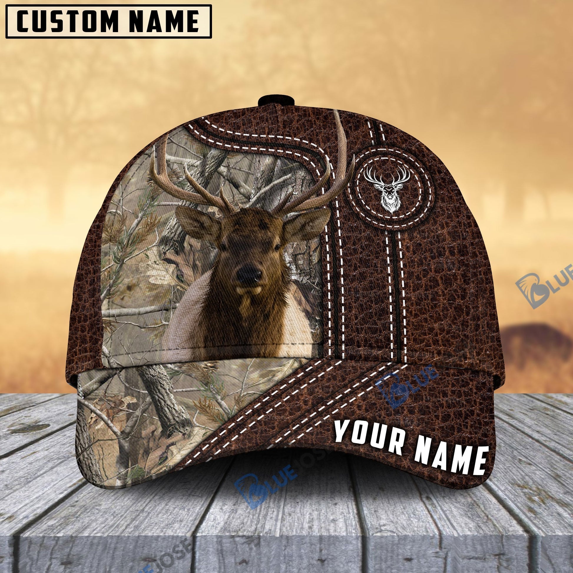 BlueJose Elk Hunting Premium Leather Pattern Personalized Name Cap (4 Colors)