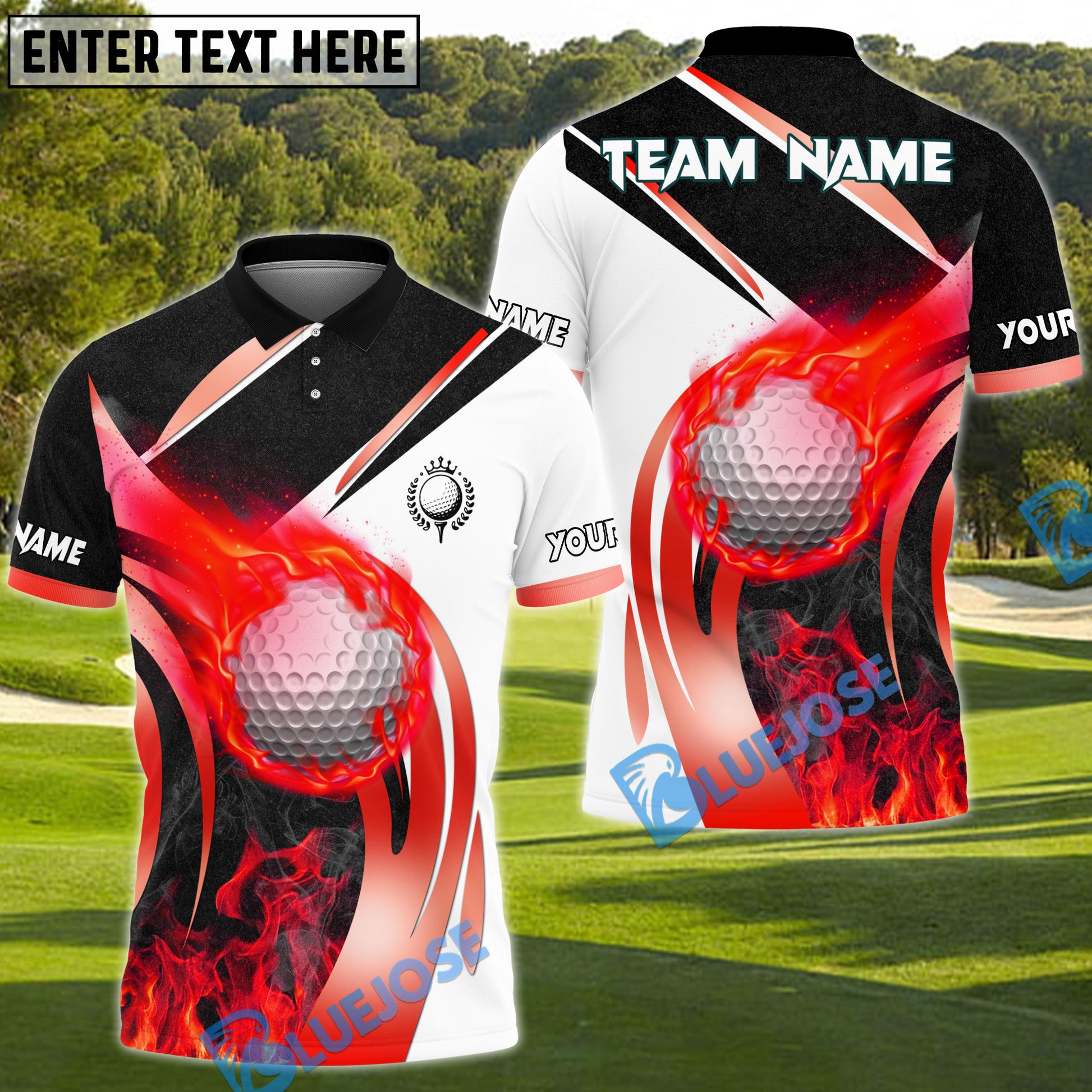 BlueJose Fire Swing Golf Polo Shirt, Customized Name & Team Name 3D Shirts (4 Colors)
