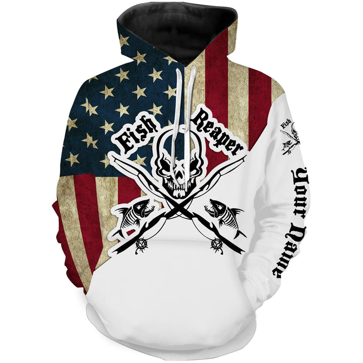 BlueJose Fish Reaper American Flag Patriotic Custom Name 3D Hoodie