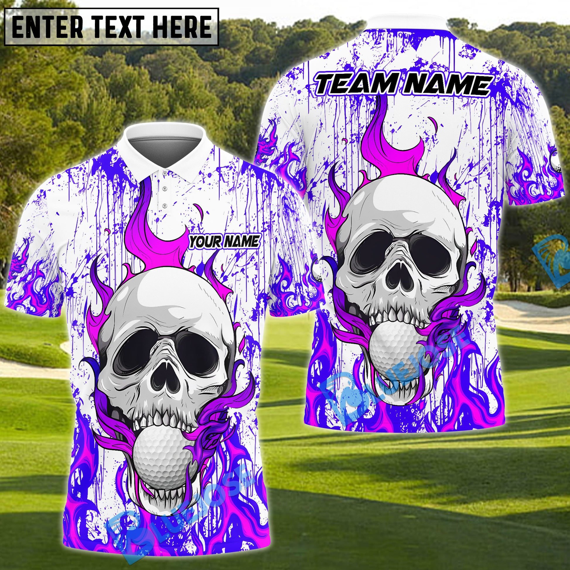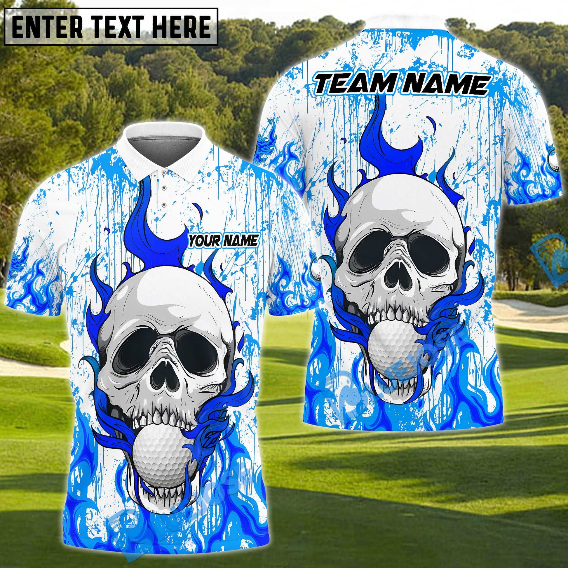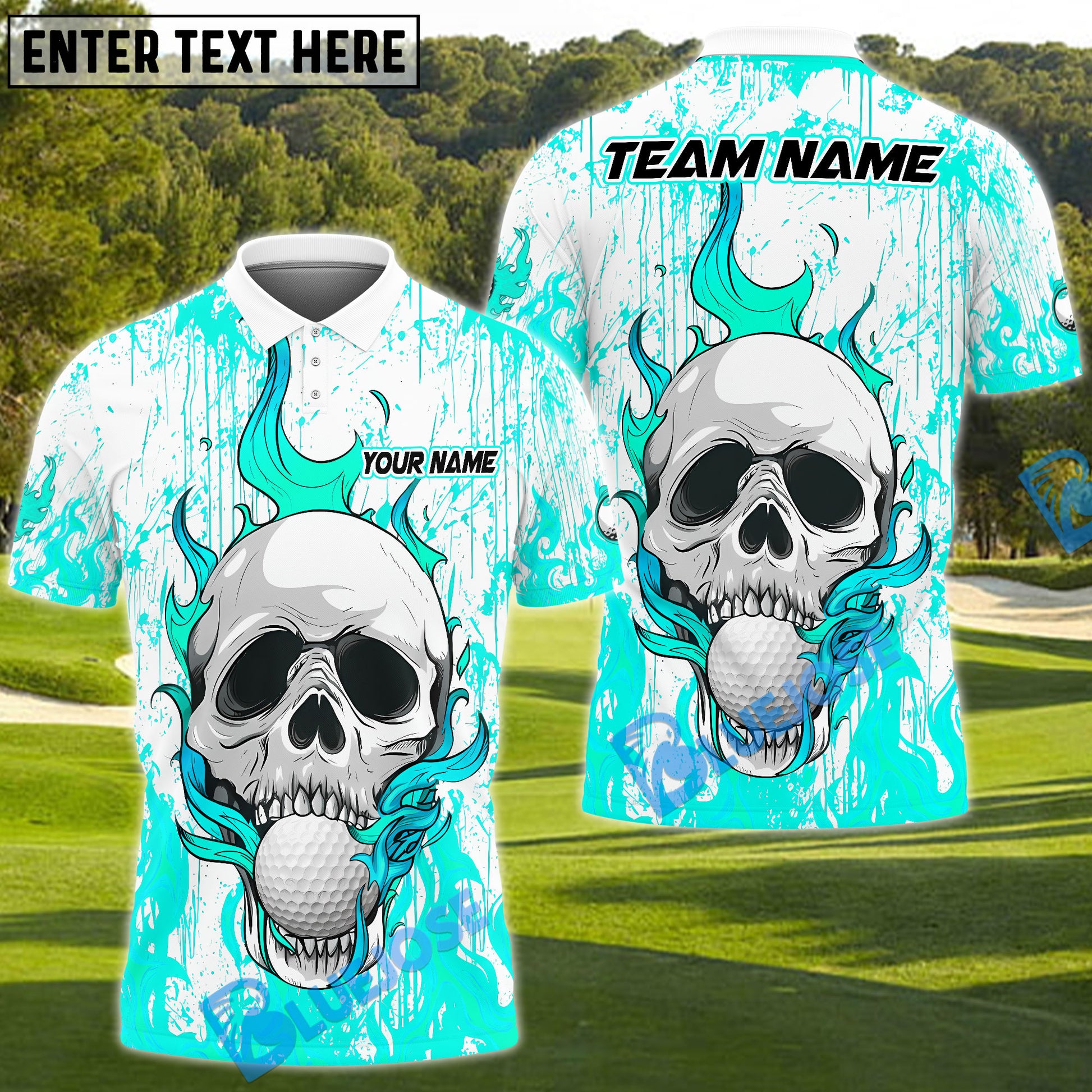 BlueJose Flaming Skull Golf Polo Customized Name, Team Name 3D Shirts (4 Colors)