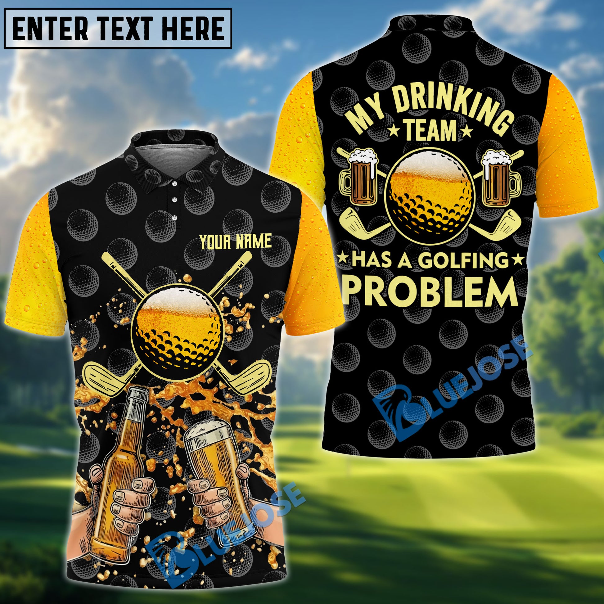 BlueJose Funny Golf Beer Polo Shirt, Custom Name & Team Name 3D Shirts