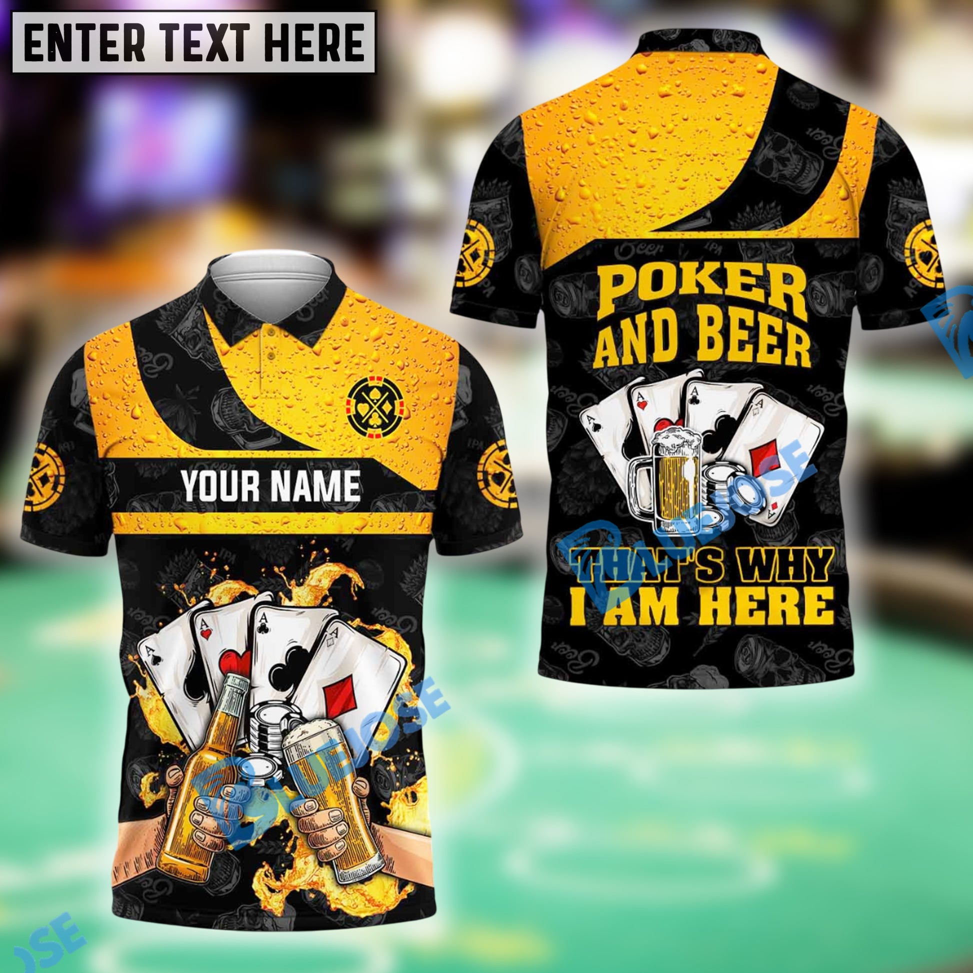BlueJose Funny Poker And Beer That's Why I'm Here Shirt, Custom Name & Team Name 3D Shirts