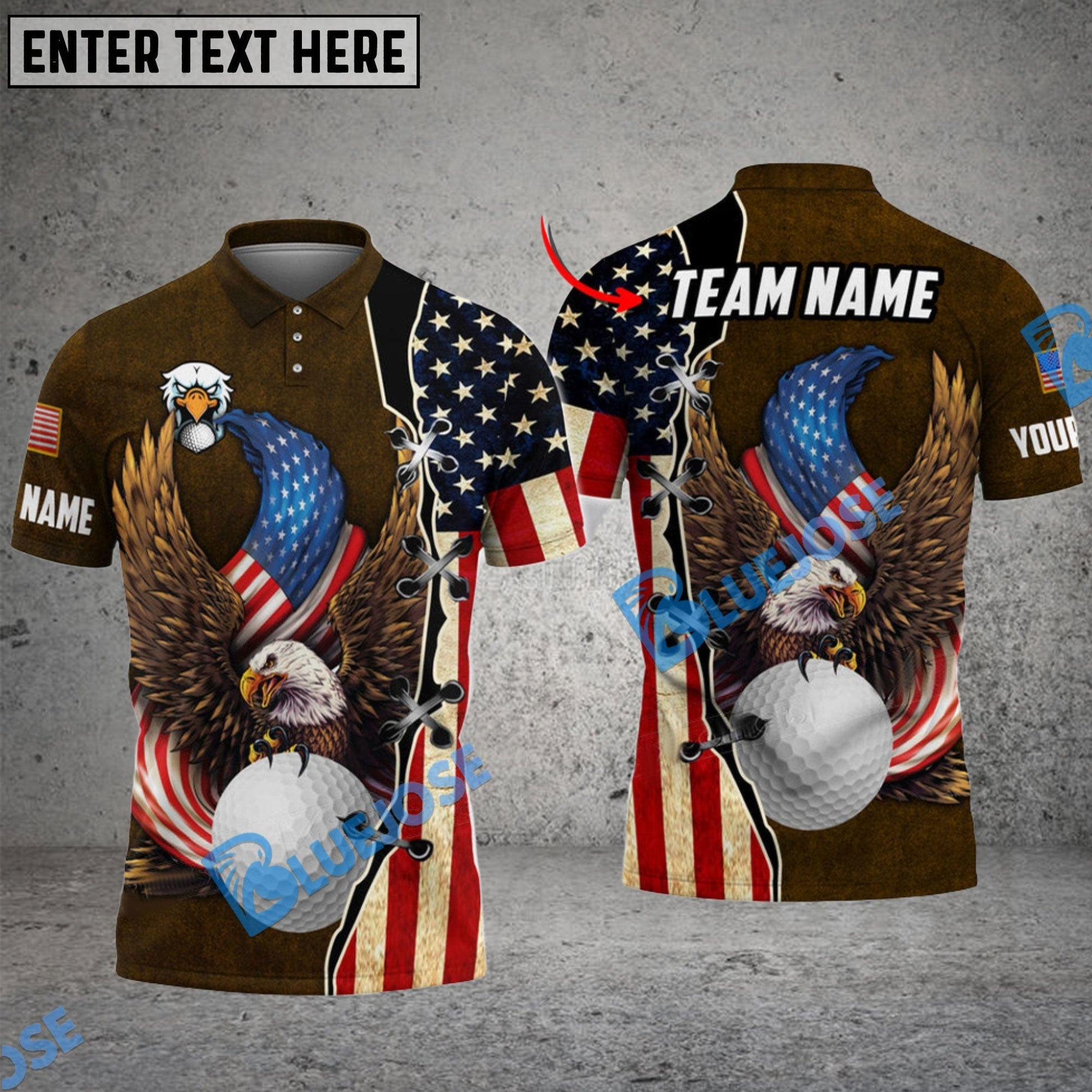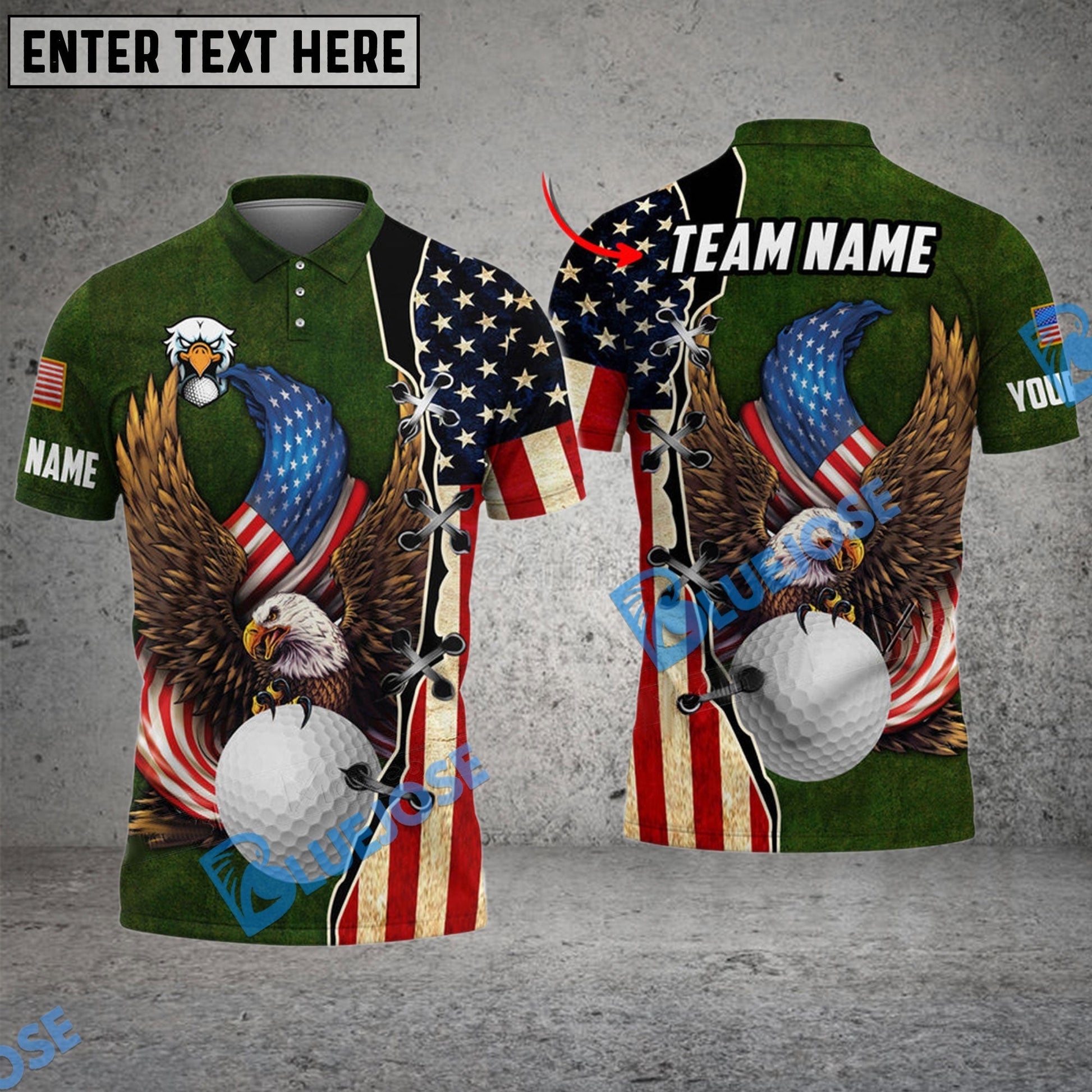 BlueJose Golf American Eagle Flag Crack Customized Name, Team Name 3D Shirts (4 Colors)