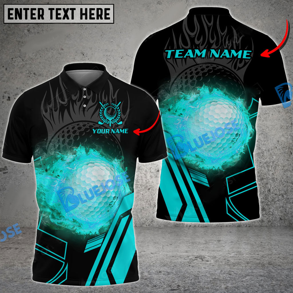 BlueJose Golf Ball Epic Flame Shadow Customized Name, Team Name 3D Shirts (4 Colors)