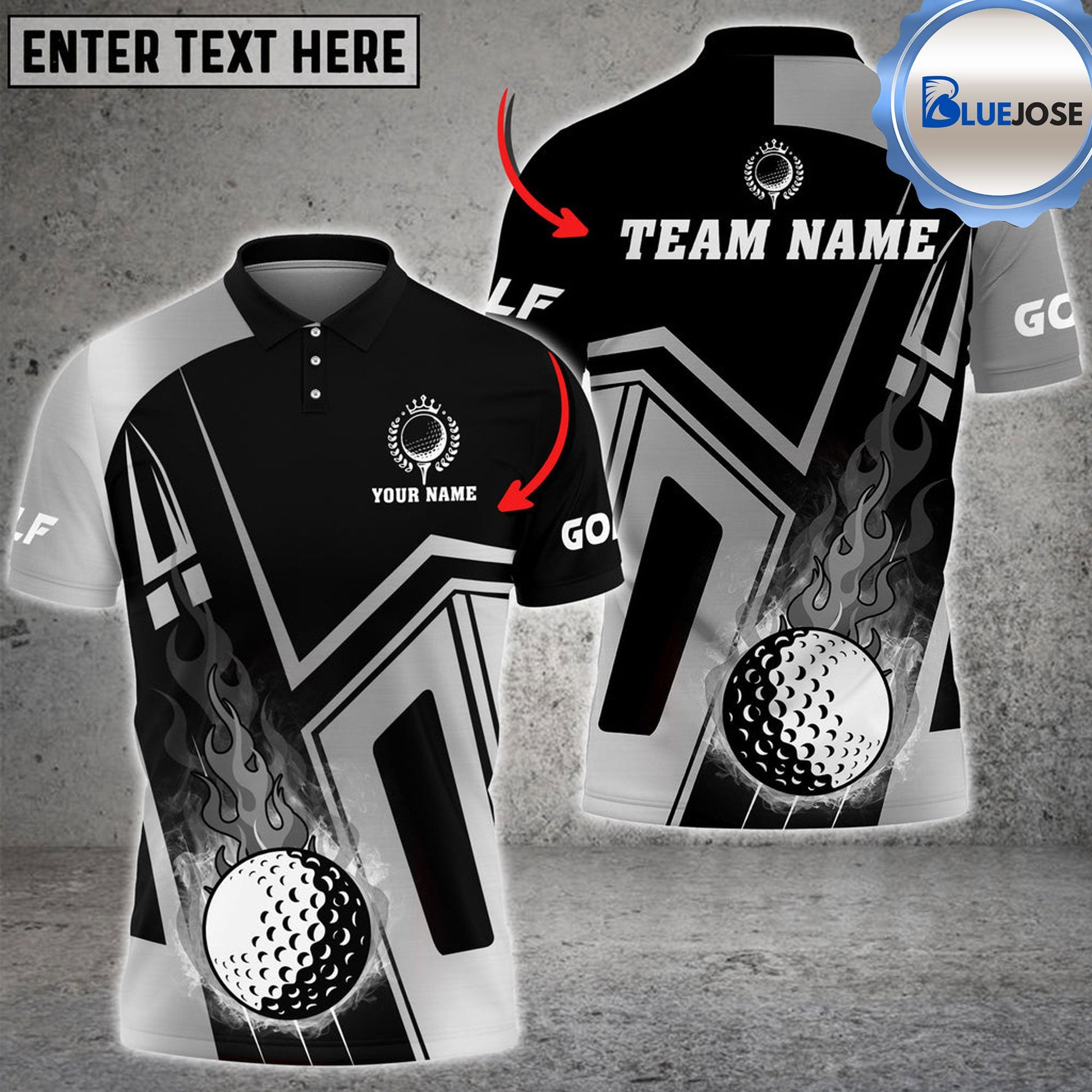 BlueJose Golf Ball Fire Flame Customized Name, Team Name 3D Shirts ( 6 Colors)