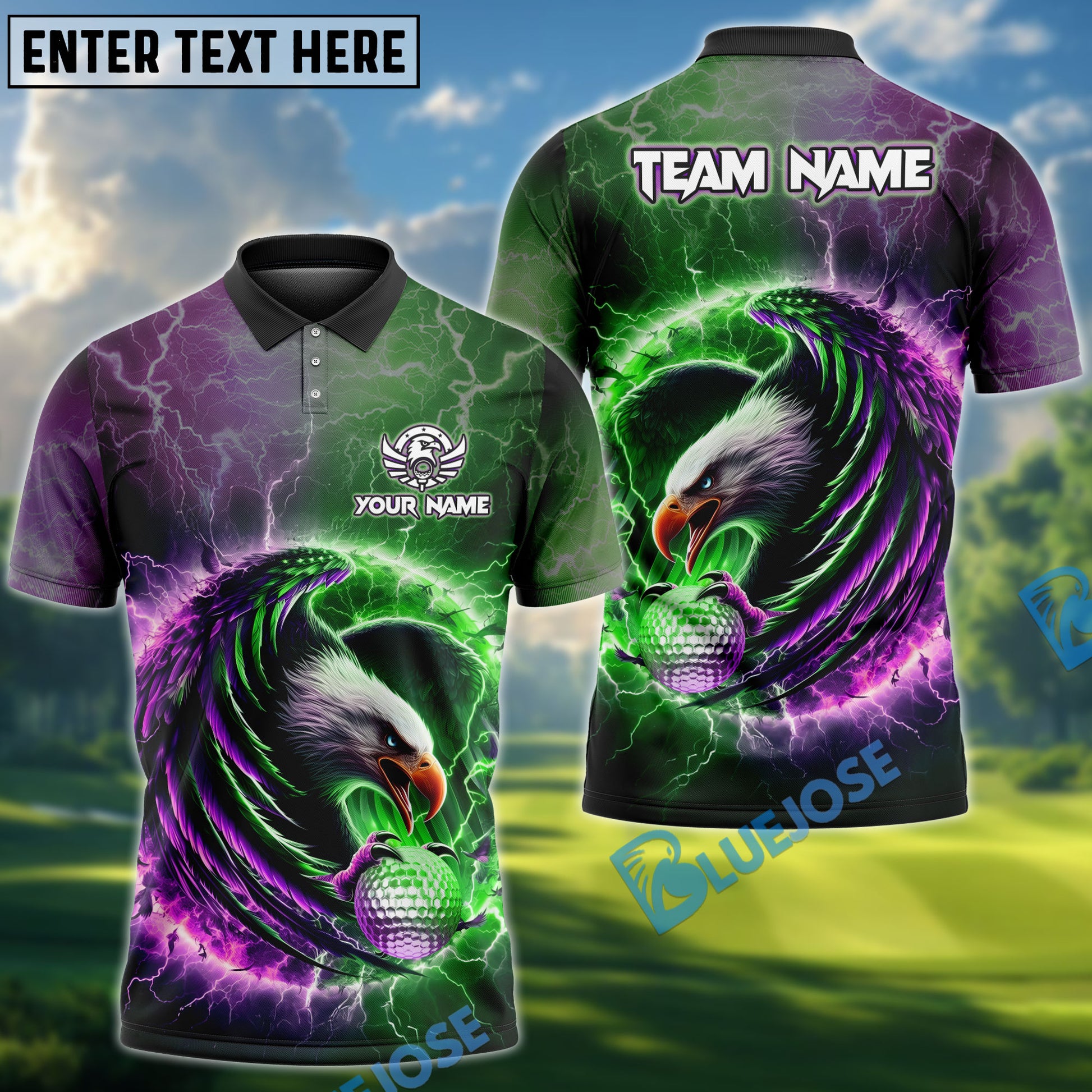 BlueJose Premium Eagle Golf Shirt Multicolor 3D Design with Custom Name & Team (4 Colors)