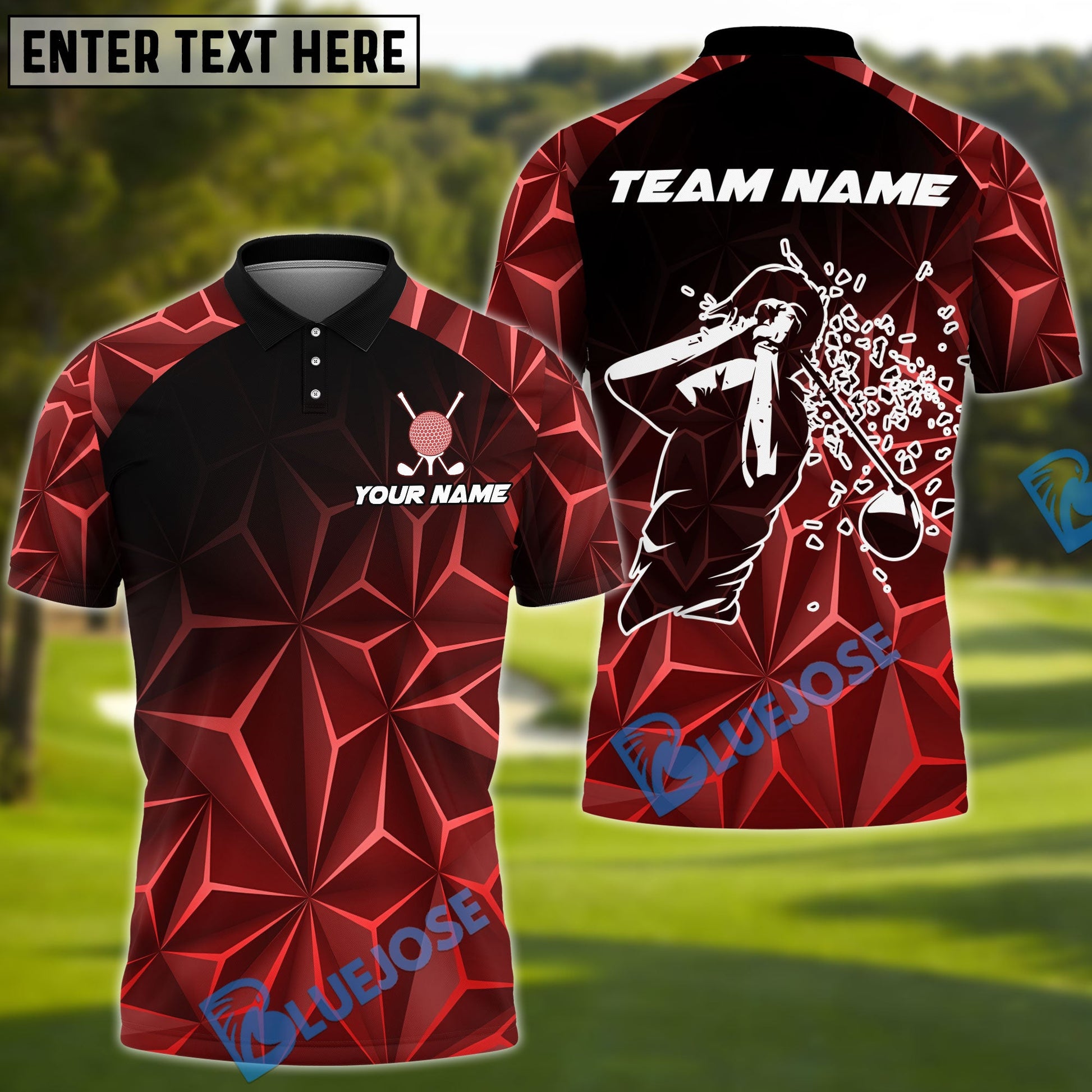 BlueJose Golf Broken Pattern Customized Name, Team Name 3D Shirts (4 Colors)