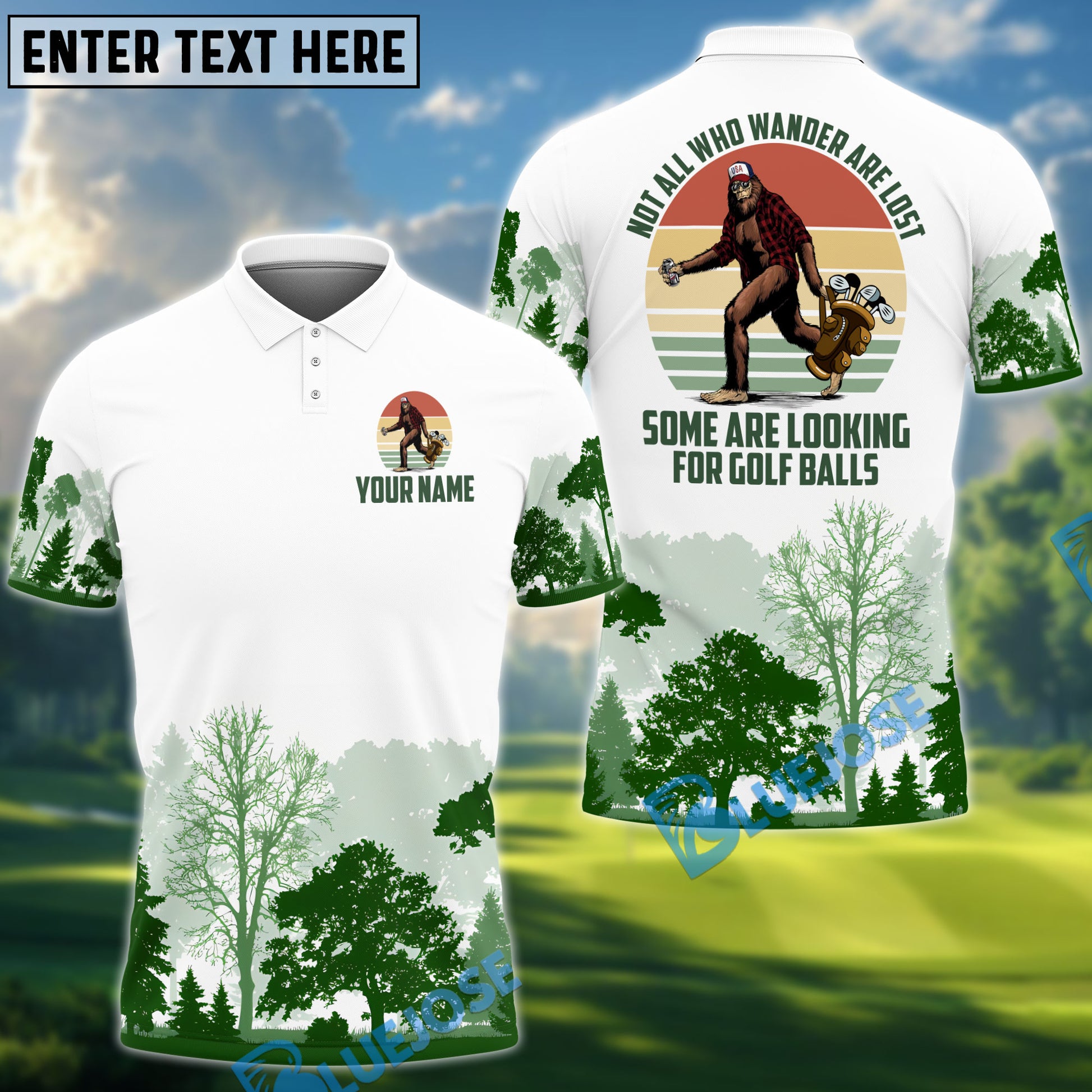 BlueJose Not All Wanders Are Lost Bigfoot Golf Shirt, Funny Golf Shirt Customized Name 3D Shirts