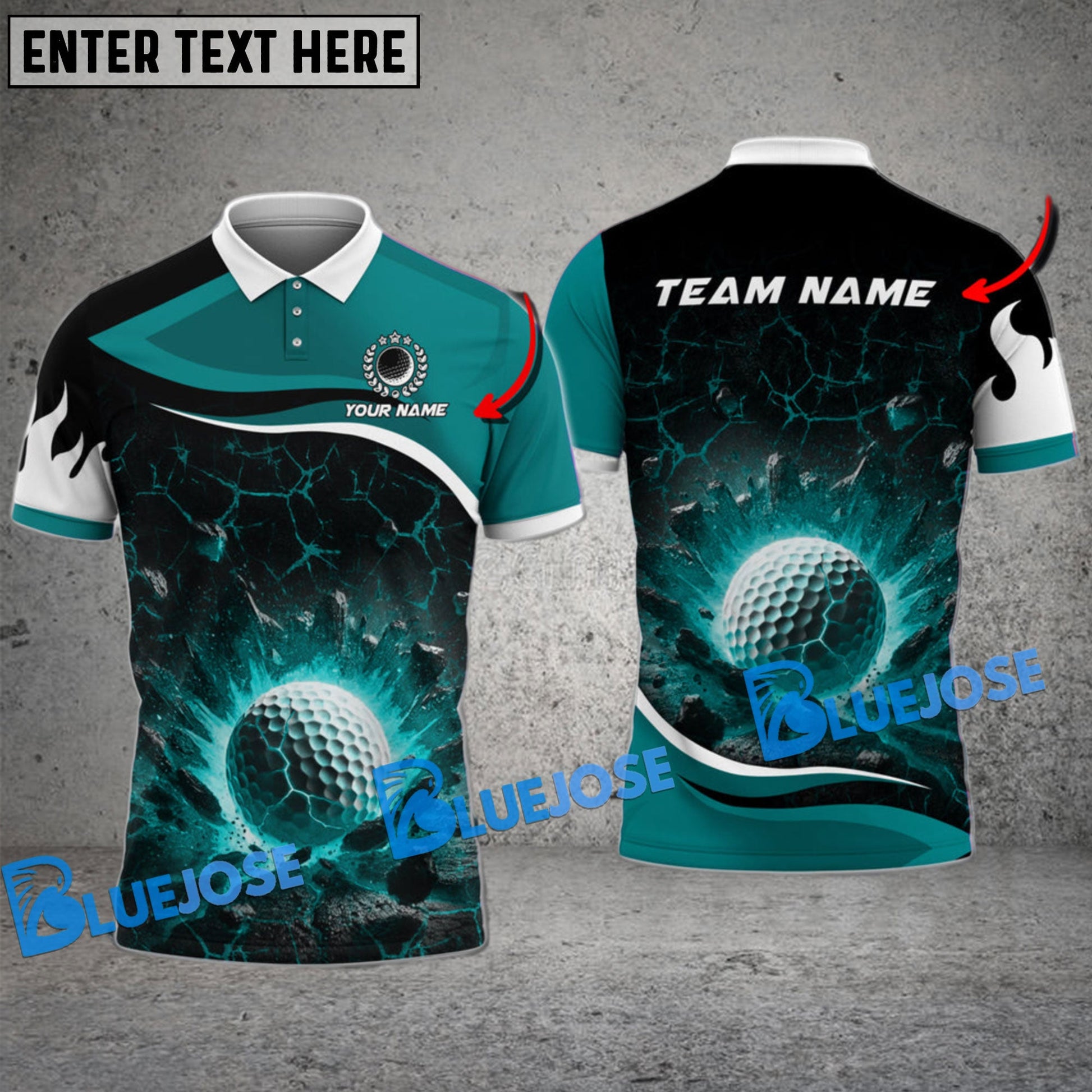 BlueJose Golf Crack Flame Magma Pattern Customized Name, Team Name 3D Shirts (4 Colors)