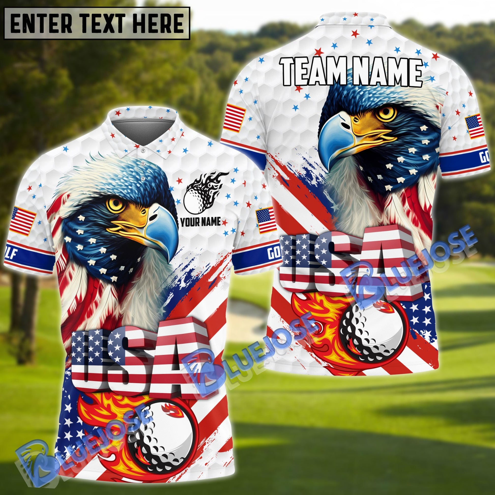 BlueJose Golf Eagle Fire Ball Flag Pattern Customized Name, Team Name 3D Shirts (4 Colors)