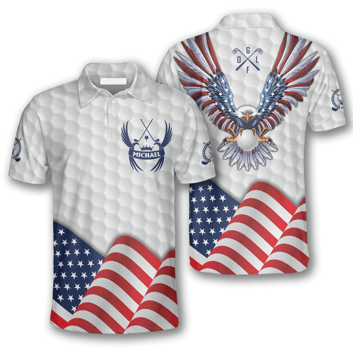 BlueJose Golf Eagle Waving Flag Personalized Name, Team Name Polo Shirt