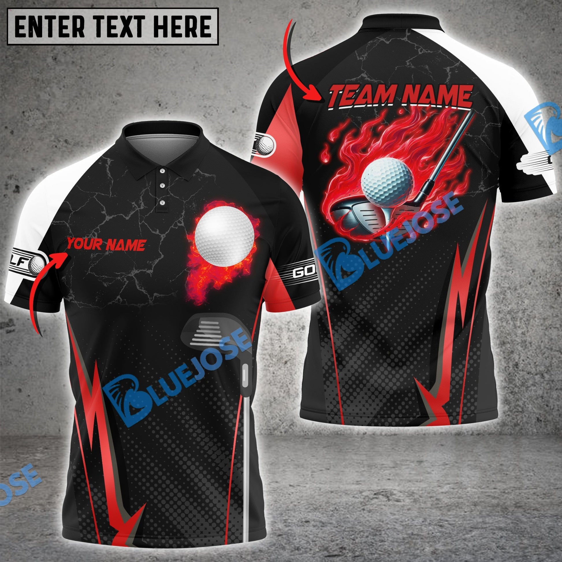 BlueJose Golf Fire Crack Customized Name, Team Name 3D Shirts (4 Colors)