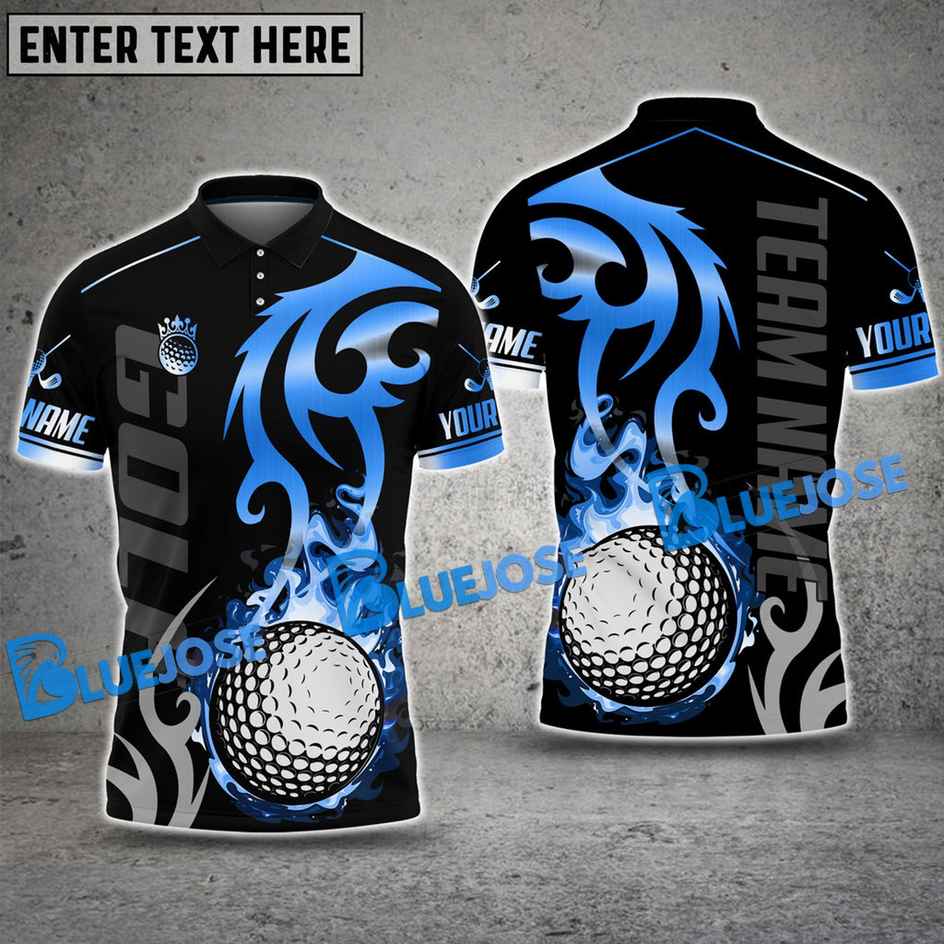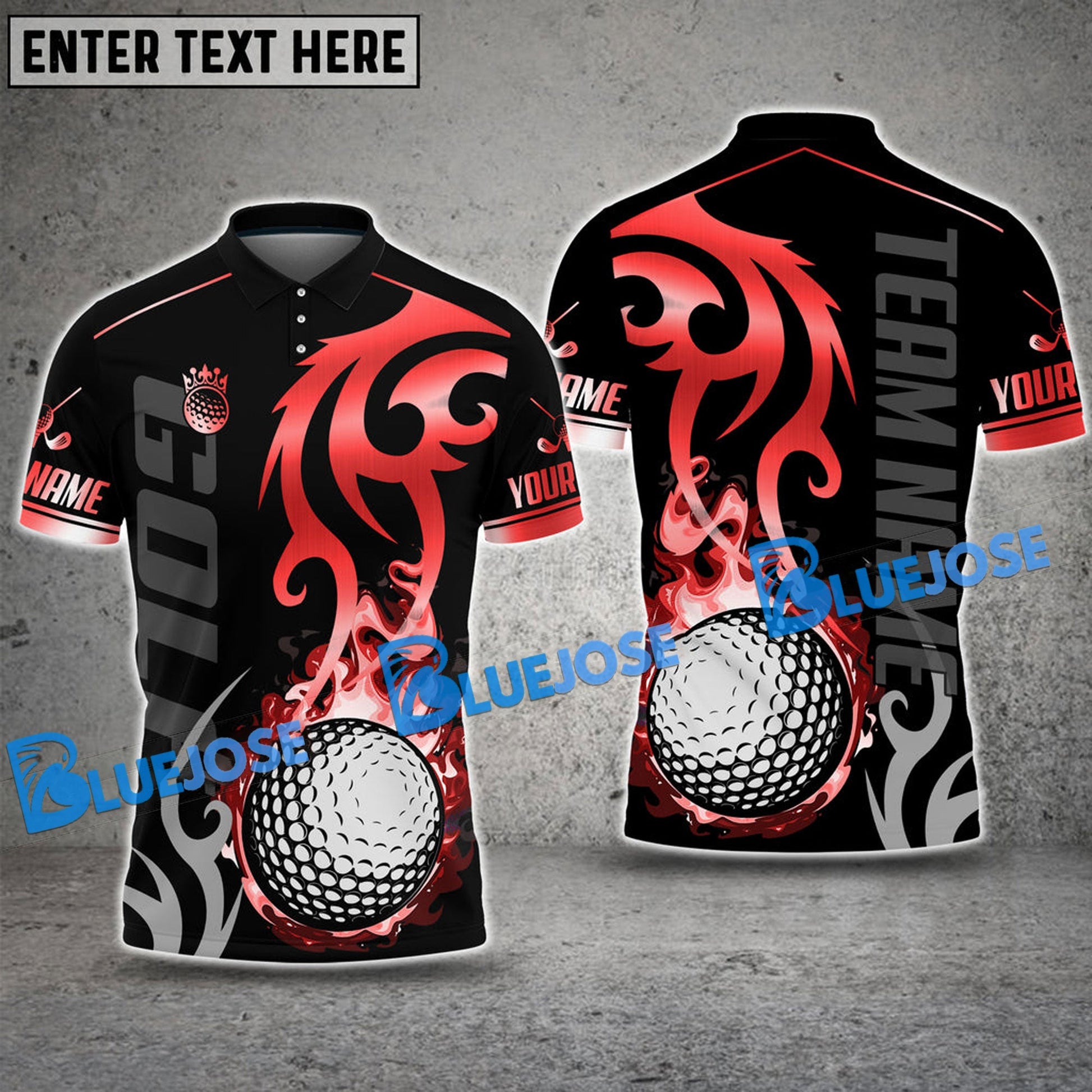 BlueJose Golf Fire Premium Ball Pattern Customized Name, Team Name 3D Shirts (4 Colors)